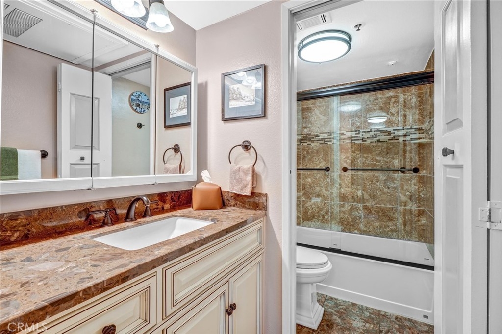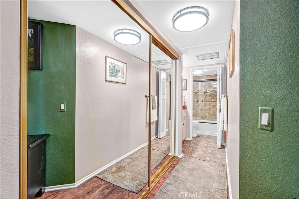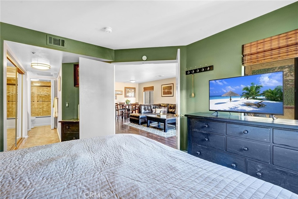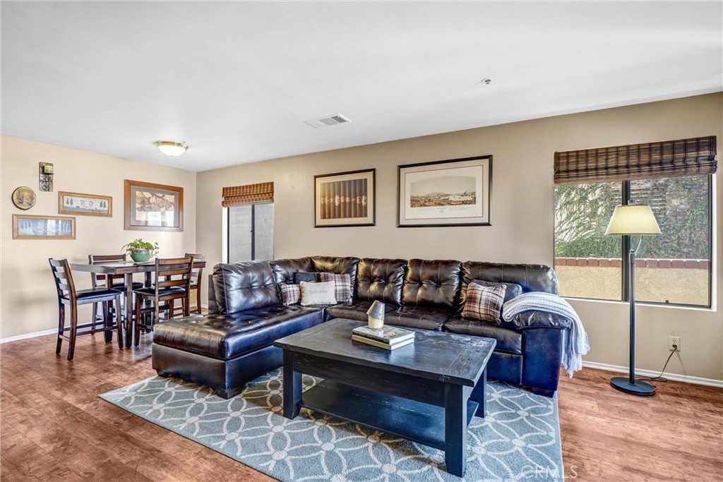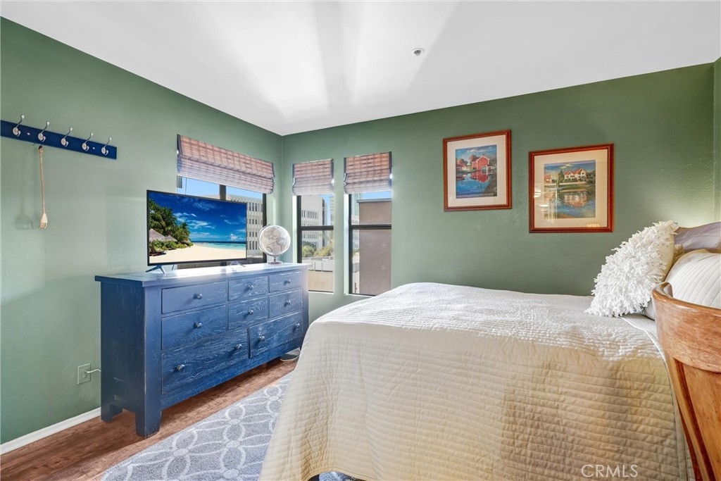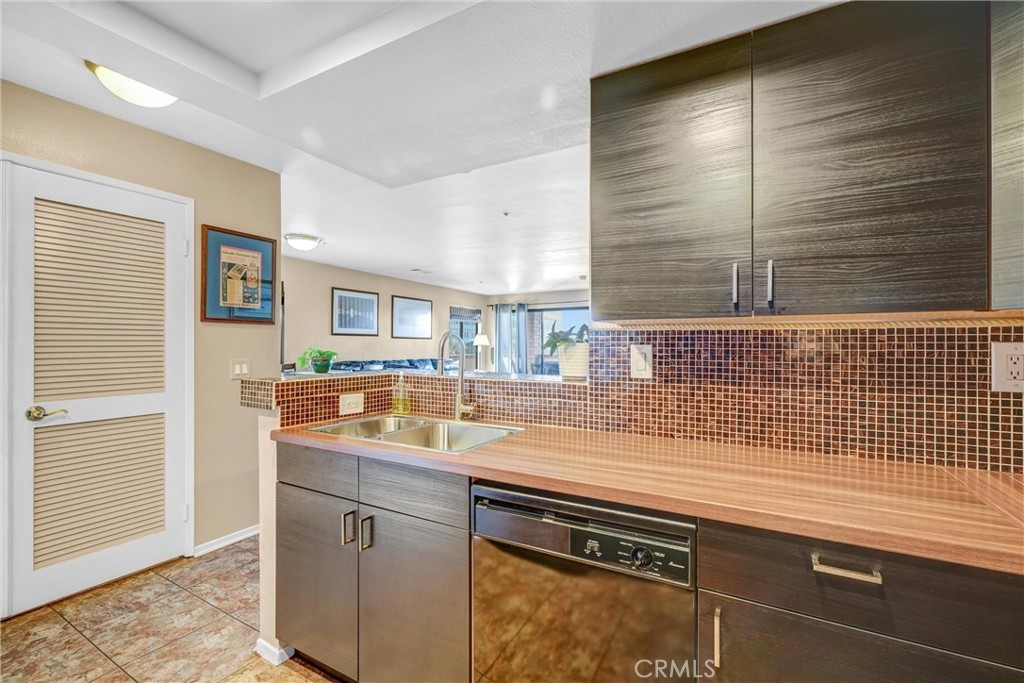 Located in the vibrant East Village Arts District, this bright and spacious one-bedroom, one-bathroom corner condominium offers 747 square feet of contemporary elegance infused with the dynamic energy of Downtown Long Beach. With only one shared wall, the layout provides added privacy, while expansive windows bathe the open-concept living space in natural light, creating a warm and inviting atmosphere. Recently updated with new heating and air conditioning, this home ensures year-round comfort. The kitchen is both functional and stylish, featuring black appliances, soft-close cabinets, faux wood countertops, and a striking amber glass tile backsplash, all illuminated by sleek recessed lighting. A breakfast bar connects the kitchen to the dining and living areas, perfect for entertaining. Custom window coverings, laminate wood flooring, and a cozy fireplace enhance the ambiance, while an L-shaped, covered balcony provides ample space for outdoor relaxation. The primary bedroom serves as a tranquil retreat with mirrored closet doors and an updated en suite bathroom. This unit also offers a convenient laundry room with extra storage space—rare for urban living. Two dedicated parking spaces add further value and convenience. Just minutes from the waterfront and pedestrian bike path, this home places you within walking distance of Shoreline Village, Pine Avenue, independent boutiques, restaurants, galleries, and the Long Beach Performing Arts Center, along with easy access to public transit. The building features a secured lobby, elevator, bike storage, and five guest parking spaces. HOA dues cover water, basic cable and internet, trash, and recycling, ensuring a low-maintenance lifestyle. For those seeking a private, turnkey sanctuary amid a thriving arts and culture scene, this sundrenched corner condo is the perfect place to call home.