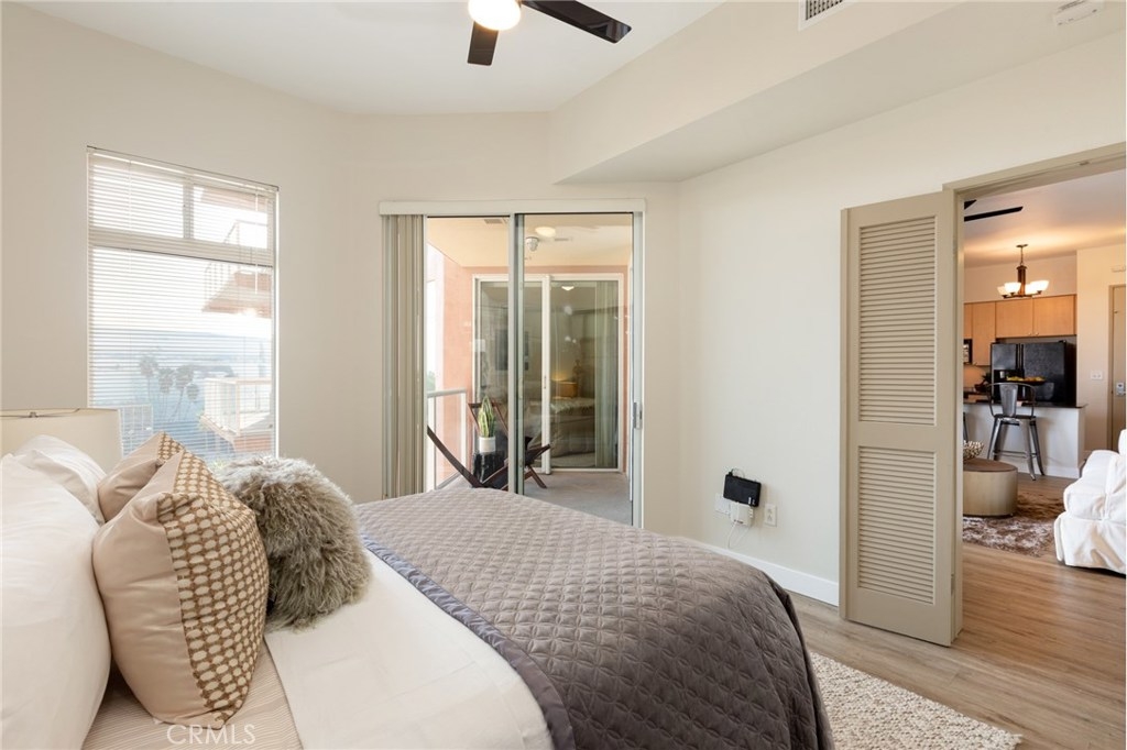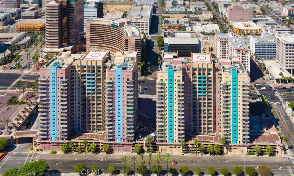 Major Price Reduction! This lovely condo has $25,000 in upgrades! Enjoy enjoy amazing views during the day of the Pacific and the Long Beach coastline, the Queen Mary, Carnival Cruise line, Shoreline Village and the marina. The lights at night are unbelievable. This well maintained condo has many upgrades including new hardwood flooring, louvre closet doors, custom lighting/ceiling fans, kitchen sink/faucet, and a beautiful, decorative barn door separating the master bedroom & master bathroom. The inner corner, private balcony with Phantom screens connect to the living room and the 2 bedrooms. There is also a breakfast bar great for entertaining. You will also enjoy central A/C and heat, in unit washer and dryer and huge walk-in closets in both bedrooms AND 2 deeded parking spaces. This urban delight offers a short distance to the beach, biking trails, the metro lines, local restaurants & shops, entertainment venues including The Terrace Theater, the Pike, movie theater, the East Village and so much more! You are just steps from the seasonal festivals at Rainbow Park, and the annual Long Beach Grand Prix that you can actually be a participant from your private balcony! Downtown Long Beach is known for its urban environment and home to the city's most popular tourist attractions. View the Queen Mary, stroll over to Shoreline Village, walk along the harbor and marina to view the yachts! Long Beach is the 'city by the sea', just 26 miles across the ocean to Catalina!