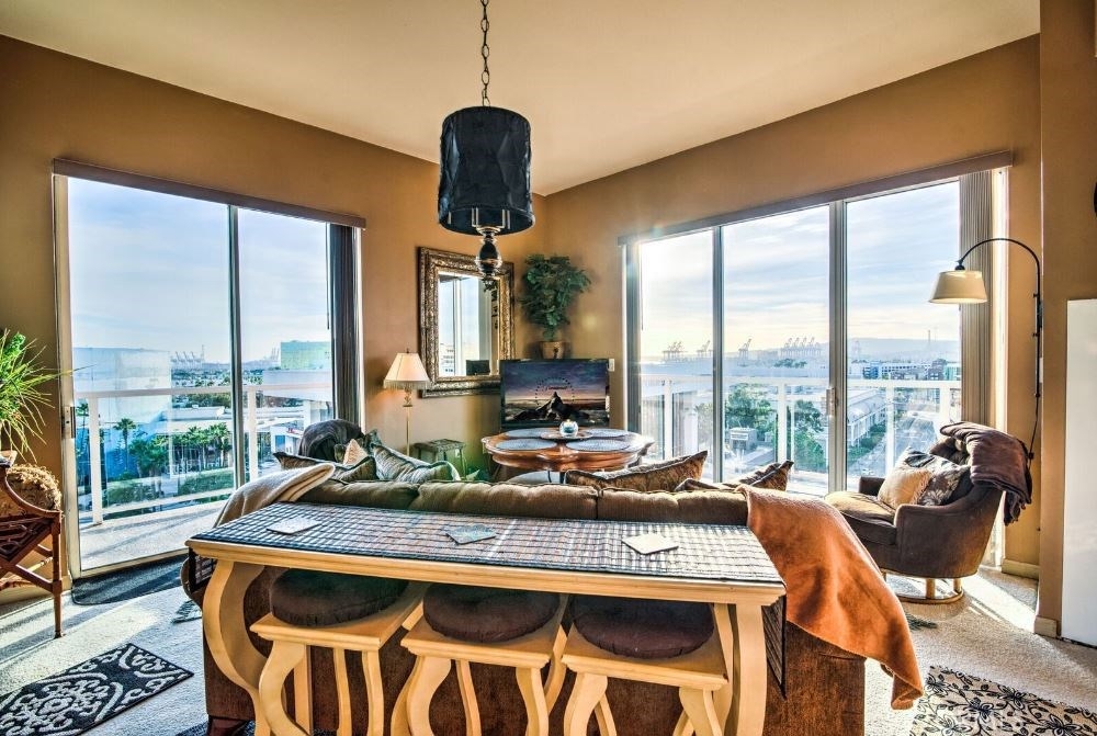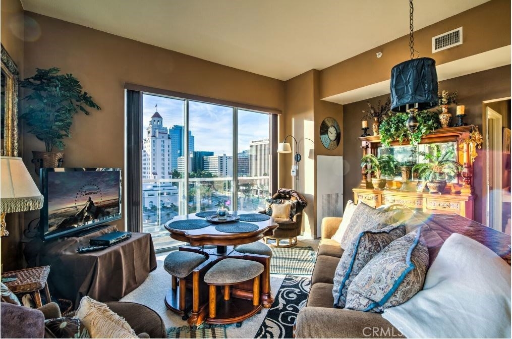 Beautiful and much sought after outside corner glass balcony unit situated on the 8th floor. This condo provides a private interior ambiance with exquisite views of the ocean and the city lights. The southern view includes the sparkling ocean and the painting by the well known artist, Wyland ,on the LB Arena. The Western view is the spectacular Performing Arts Center, the dancing and colorful fountains in play, and onto the shipping ports and the hills of San Pedro. If you are a fan of the Long Beach Grand Prix you have a first row seat to watch the cars enter the back straight away and fly down under the bridge. This wonderful unit is nicely furnished as a second home. Aqua Towers are the most prestigious buildings in the downtown Ocean corridor and this condo is one of the best situated units. A rare purchase opportunity because of Location, Location, Location. Seller is original owner, one of the first to purchase at the Aqua and first to move into the building. The sale includes a deeded parking space and a RARE private garage in the parking structure. The garage is 24 x 16 with an enclosed storage room 6 x 6, all located 55 steps to the elevator. The unit is being sold fully furnished and is ready for immediate move in including all linens, pots, Pans, dishes, and silverware. 4 bicycles in the garage can sell with the unit unless buyer does not want them. Downtown Long Beach is Urban Coastal and the only waterfront downtown between San Diego and San Francisco!