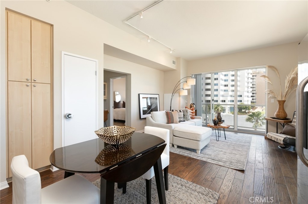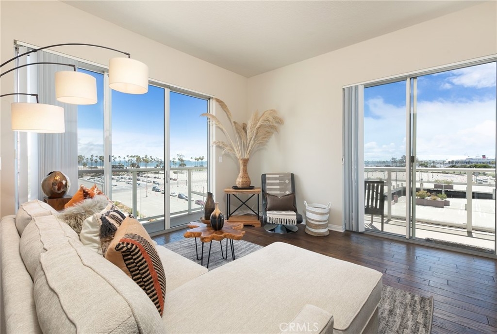 Location! Location! Location! Experience and enjoy the beautiful views of the sand and coastline all the way down to the OC from your living room, and both bedrooms! Plus, this unit offers the much sought after wrap around glass balconies that overlook the Pacific, the marina, the Queen Mary, sandy beaches, with yachts and sailboats cruising by. Enjoy the peaceful balcony and the sights & smells of the ocean breeze, and the evening lights of the harbor and marina. Except for the 2 bedrooms, the entire condo has wood flooring. The master bedroom has a private balcony w/ocean views, and master bathroom with huge walk in closet that is customized with cabinets and drawers. The guest bedroom has upgraded plantation shutters that open up fully to highlight the coastlines views. The guest bedroom closet also has the same beautiful built-ins as the master. Full size Washer and Dryer in unit, with central A/C and Heating to further enhance your comfort. This high-rise complex is 100% secure, with on-site 24/7Concierge, gated underground parking with 2 deeded parking spaces. Luxury amenities include FREE basic Internet, Pool and Spa, Fitness Center, Sauna Room, BBQ Area, and Club Room (which can be reserved) with two Business Centers. Downtown Long Beach has one of the highest walk score with restaurants, shops, boutiques, museums, beach, coffee houses that surrounds your downtown experience! Enjoy a short hop to the Queen Mary, Shoreline Village, the marina and the Aquarium of the Pacific. You can walk from the Aqua to the pedestrian Rainbow Bridge that takes you to hundreds of seasonal events and festivals. Cone and enjoy the coastal life in downtown Long Beach, the city by the sea!