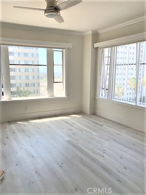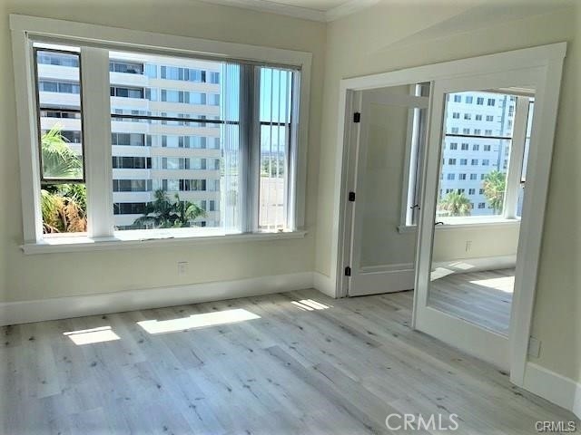 Completely renovated 1 Bedroom, 1 bath end unit with panoramic ocean view. Association pays for Water, Gas and Electricity. Kitchen completely renovated with new white cabinets and quartz countertops. Bathroom updated with custom tiles on the walls and floors. New electrical and plumbing throughout. New laminate wood floors throughout. Ample storage. Living and dining room with extra storage. Panoramic view of city, OCEAN and Queen Mary. Located in the heart of downtown long Beach. Walk to Restaurants, beach and Aquarium of the Pacific. Beautiful historic building with a common area, including garden and rooftop Atrium that boasts a 180-degree ocean view -- MUST SEE!
