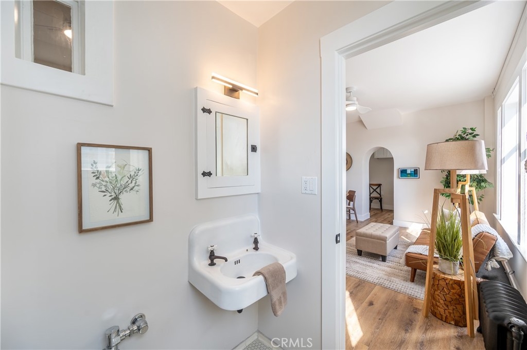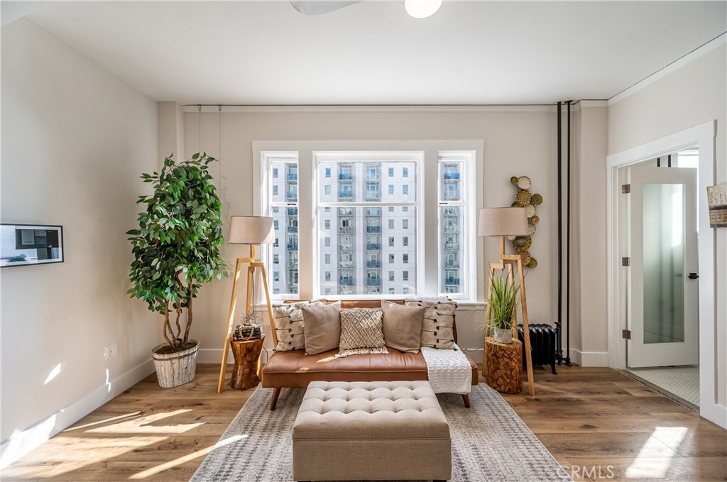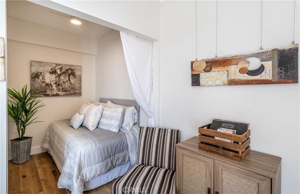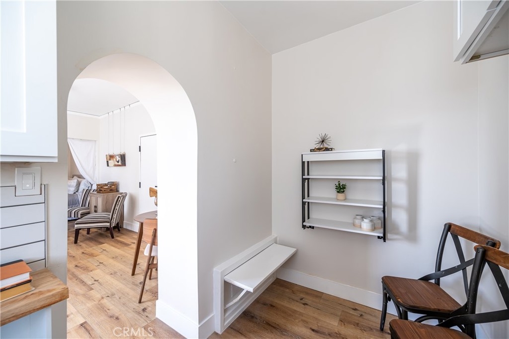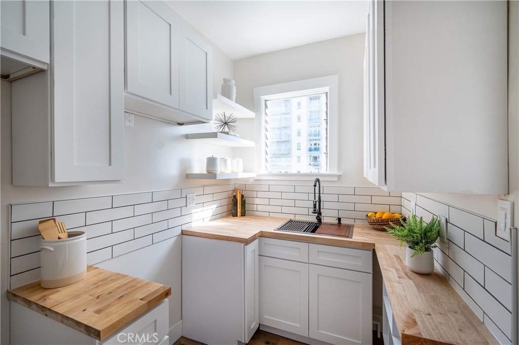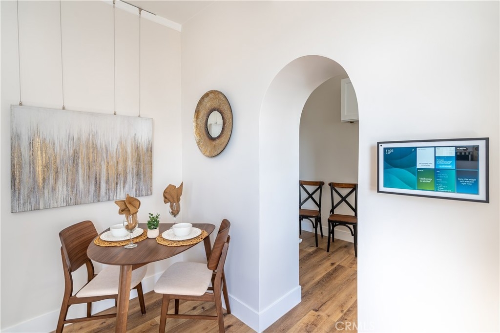 SMART HOME WITH OCEAN VIEWS! Nested in the historic Artaban building in Downtown Long Beach, this junior one-bedroom has been tastefully remodeled and future-proofed with smart features while preserving the charm of this 1920s urban gem. The space has been fully upgraded with new electrical, new plumbing, new vinyl flooring in the living room and kitchen, new cabinets and butcher's block countertops, new walk-in shower, new ceiling fans, new double outlets with USB and USB-C ports, and an additional den that can be used as a bedroom separate from the living area. What truly brings this home to the 21st century and makes it different from others is the addition of smart features throughout. The front door is equipped with a smart doorbell and smart lock that lets you unlock the door with your fingerprint! The smart light switches allow you to turn the lights on and off remotely and dim the lights to create the mood that is right for you. All your smart devices can be controlled from one place using your phone or the wall-mounted Amazon Echo Show 15! With a 15.6'' screen, this smart display has many features including a built-in camera so you can make sure your furry ones are doing well while you are away! The Artaban building is carefully maintained and is part of the historic fabric of Long Beach. It features a lobby with an ornate fireplace and fresco ceilings, a solarium where you can entertain family and guests, a bike room, a well-manicured private garden, and common laundry facilities. With an impressive 94 walking score, this home is steps away from the beach, tons of restaurants and shops, as well as the cultural and financial heart of the city including the Long Beach Convention Center, Pine Street, the Promenade, The Pike Outlets, Shoreline Village, the East Village Arts District, the Performing Arts Center, and Retro Row just to name a few! Come check out the home soon as it won't last long!