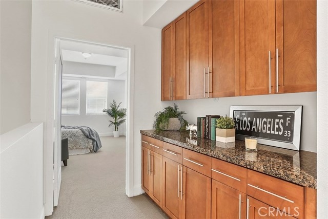 Welcome to urban living in coastal chic style at this expansive BLU loft in the trendy East Village Arts District of Downtown Long Beach. BLU is a coveted new residential condominium collection completed in 2008 from The Kor Group, creators of the acclaimed Viceroy Hotel of Santa Monica. This turn-key two-story loft lays out beautifully with expansive 12-ft ceilings and bright, open and airy spaces. A unique and abounding floor plan greets you on the entry level, including the spacious kitchen with gourmet stainless steel appliances, the breakfast bar, dining area, and the living room space with gorgeous hardwood flooring, canned LED lighting, and designer paint. Upstairs is your huge master bathroom with a large vanity and a massive walk-in closet, as well as the spacious second bedroom with a large closet and generously sized bathroom, as well as additional linen storage. The side-by-side laundry closet is adjacent a huge half bath and conveniently connected to the kitchen. Resort style amenities include a lobby entrance reminiscent of a boutique hotel with 24/7 coffee bar, tranquil courtyards, outdoor lounge area with a fireplace and built-in gas BBQs, clubhouse and fitness center, game and sports lounge including a billiards table and putting green, secured yet convenient key-fob system, and bike storage. This unit comes with 2 gated-garage parking spaces, and the complex provides over 30 guest parking spaces available. Association includes trash, water, and sewer.