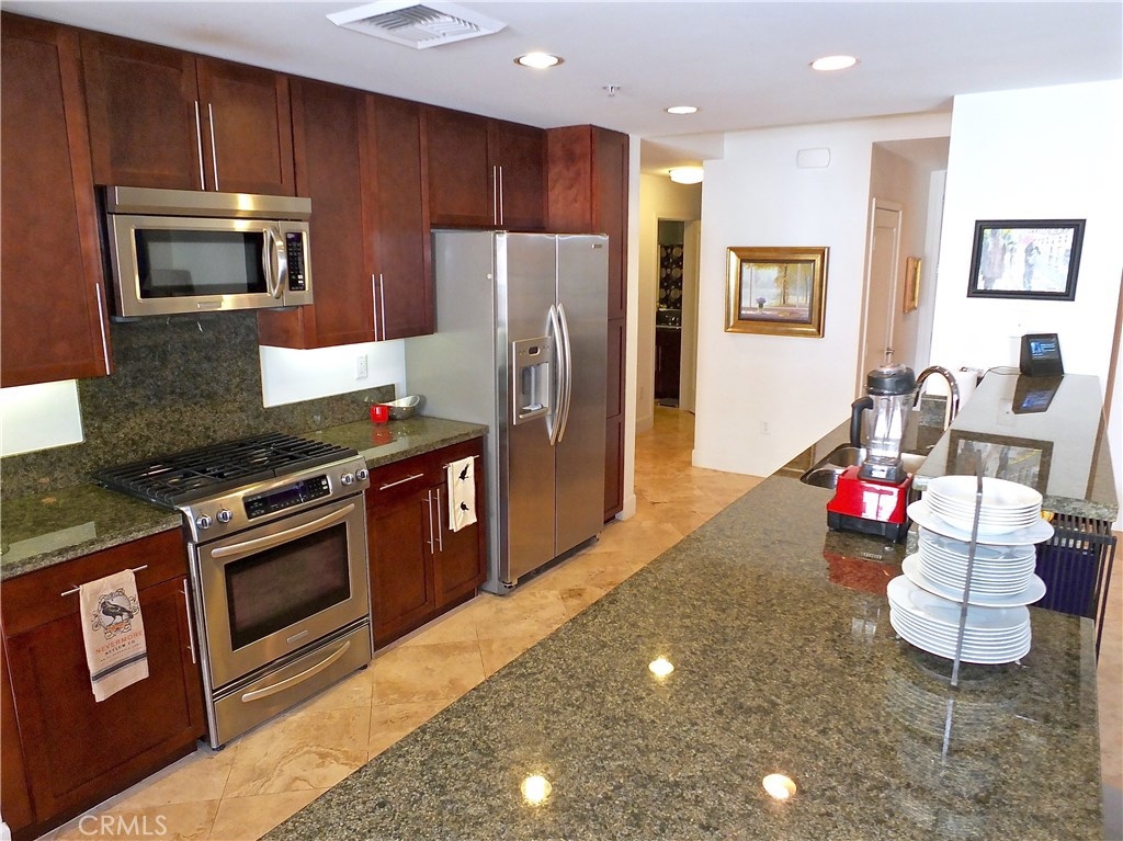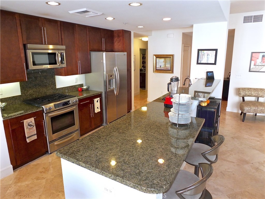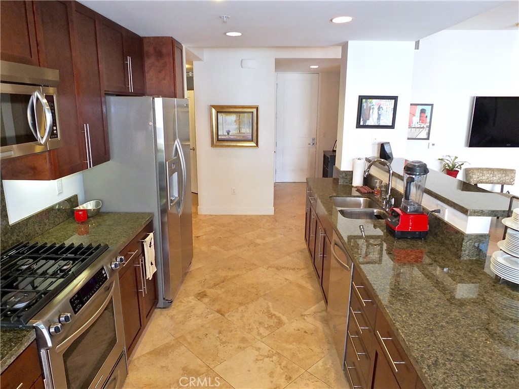 Rarely available 3 Brm 2 bath, single level condo. Conveniently located close to the Blue Line, shopping, restaurants, transportation and the revitalized downtown area. Blu's foyer features several sitting and meeting areas plus a self-service coffee bar for those mornings you don't want to walk 2 blocks to Starbucks! When you enter your new home, you'll be amazed by large living room and wall to wall windows. The open concept design and 9' ceilings give you many options for entertaining and everyday life. Gleaming travertine stone floors flow throughout the living area and hallways. The granite kitchen overlooks the living room and dining room, features a breakfast bar perfect for grabbing a quick meal or enjoying guests while preparing dinner. The gas stove, microwave, refrigerator and dishwasher are all stainless steel. The dining area overlooks the private patio and enjoys open views of the urban life and palm trees! The private patio is great for evening relaxing. The first bedroom is off of the front hallway, separated from the other bedrooms. The 2nd bedroom has a door to the guest bath, making a perfect 2nd master. The master suite has a large walk-in close, huge bathroom, walk-in shower and soaking tub, 2 sinks. Inside laundry. 2 side-by-side parking spaces. Amenities include 24/7 coffee bar, tranquil courtyards, outdoor lounge, fireplace and built-in gas BBQs, clubhouse and fitness center, gaming lounge including a billiards table and putting green and bike storage.