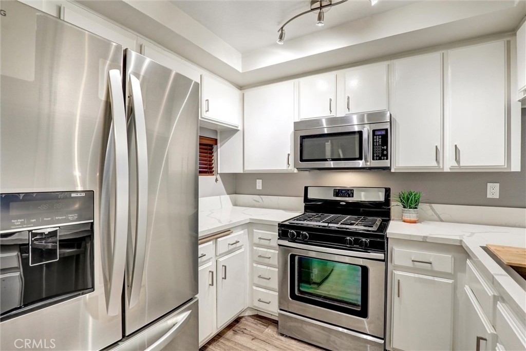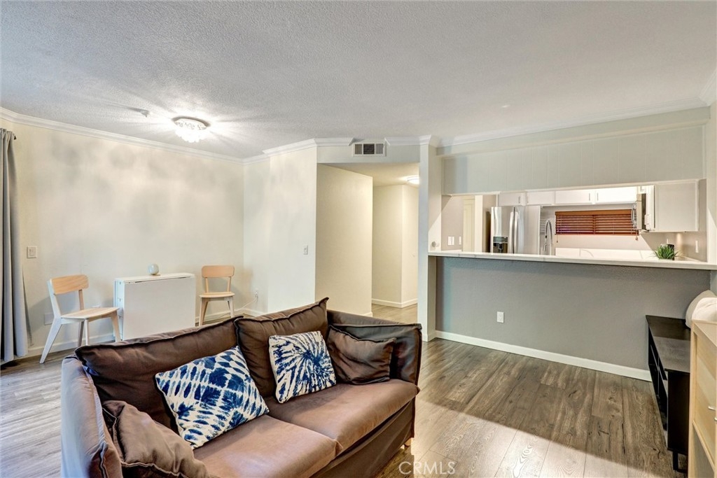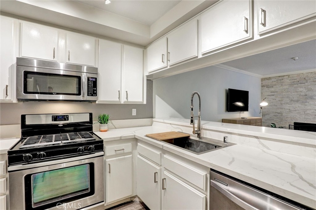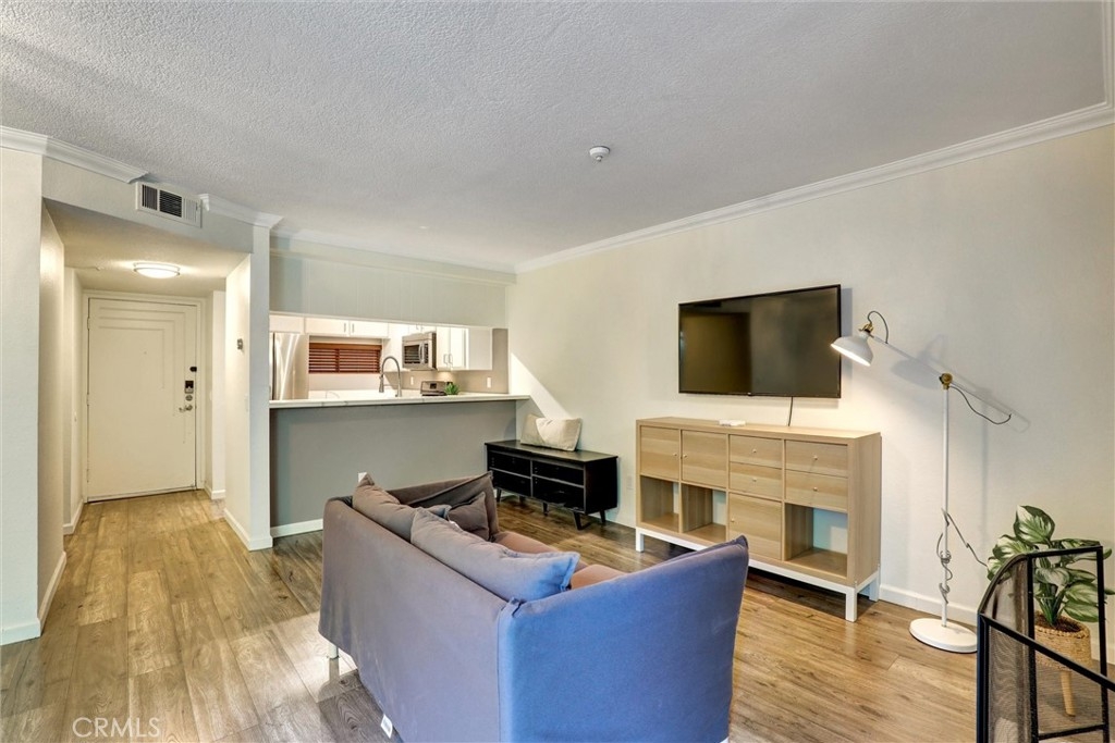 VA & FHA APPROVED BUILDING! Welcome to this updated, move in ready 1 bedroom condo tucked into a secured community just blocks from the 4th Street Corridor. This light filled home features newer floors, crown molding, and a cozy fireplace with a modern stacked stone surround. The kitchen offers sleek quartz counters, white cabinetry, and stainless steel appliances including a gas stove and built in microwave, making meal prep a breeze. The bathroom has been refreshed with a walk in shower and clean, contemporary finishes. Enjoy your own private balcony overlooking lush greenery, perfect for morning coffee or an evening unwind. The unit also includes central AC, in unit laundry, and one assigned garage parking space with storage. The gated complex features a sparkling pool, clubhouse, and secured entry. HOA includes water and trash. Conveniently located near shops, dining, and entertainment along Retro Row, this condo offers a great blend of comfort, style, and easy access to everything Long Beach has to offer. Seller has a loan at 5.65% that is assumable as well.