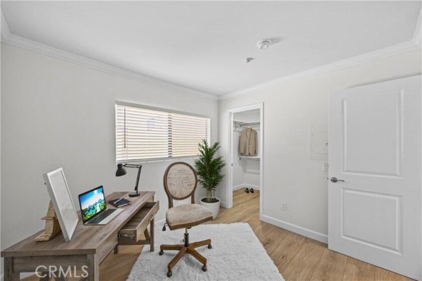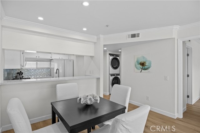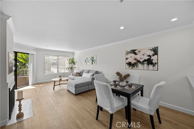 This beautifully renovated condo showcases an extraordinary attention to detail and offers a perfect blend of location, features, and amenities in one exceptional package. This unit will not disappoint! Located just minutes from the beach, this move-in-ready home features a bright, open layout that is both spacious and inviting. The home has been thoughtfully enhanced with new flooring, smooth ceilings and walls, and elegant crown molding and baseboards throughout. The living area is designed for comfort, featuring an electronic gas fireplace that adds warmth and ambiance with the touch of a switch and opens to a private balcony overlooking lush landscaping, creating a peaceful outdoor space. The kitchen is equipped with all-new Whirlpool appliances, including a French door refrigerator, slide-in gas range, over-the-range microwave, tall tub dishwasher with stainless steel interior and third rack, and a full-size stacked washer and dryer. A walk-in pantry with ample shelving and abundant lighting provides additional storage and convenience. The primary bedroom offers private access to the shared patio through sliding glass doors with vertical blinds and decorative cornice boxes. Both bedrooms are generously sized and feature walk-in closets. The split bathroom design allows for multiple users, with the bathing area and toilet separated from the vanity. The Americast bathtub provides a 13.25” soaking depth with heat retention, while the sleek, chair-height elongated one-piece toilet adds modern elegance. The 63" double sink vanity with a wall-to-wall mirror and overhead lighting completes the space. Additional enhancements throughout the home include: New pre-hung interior doors Recessed lighting in the kitchen, hallway, bathroom, and dining area Faux wood window coverings. Community amenities include elevator access, a large swimming pool and spa, beautifully maintained grounds, controlled access, secure underground parking with guest spaces, and a recreation room available for residents. This home offers the perfect combination of a prime location, high-end finishes, and resort-style amenities. Schedule your private showing today and experience Long Beach living at its finest!