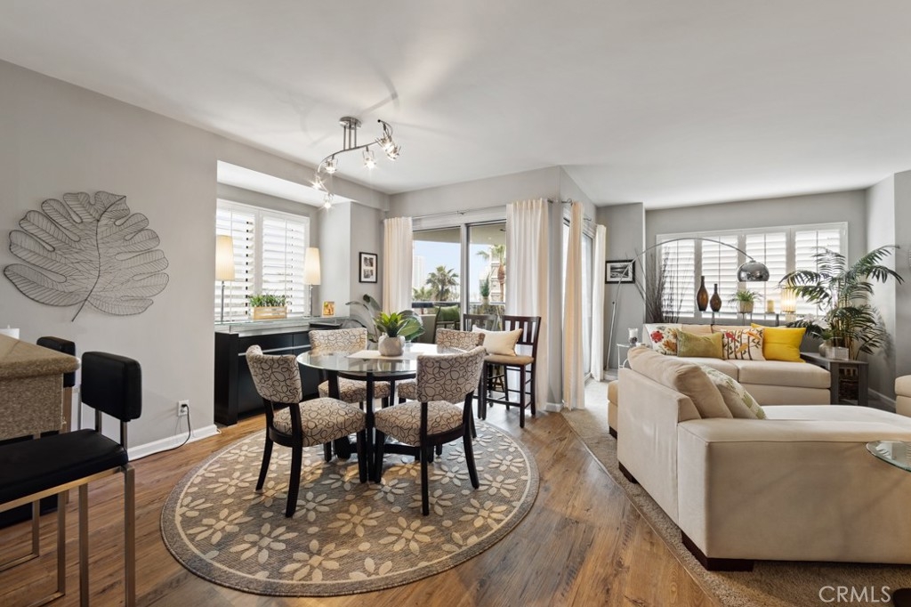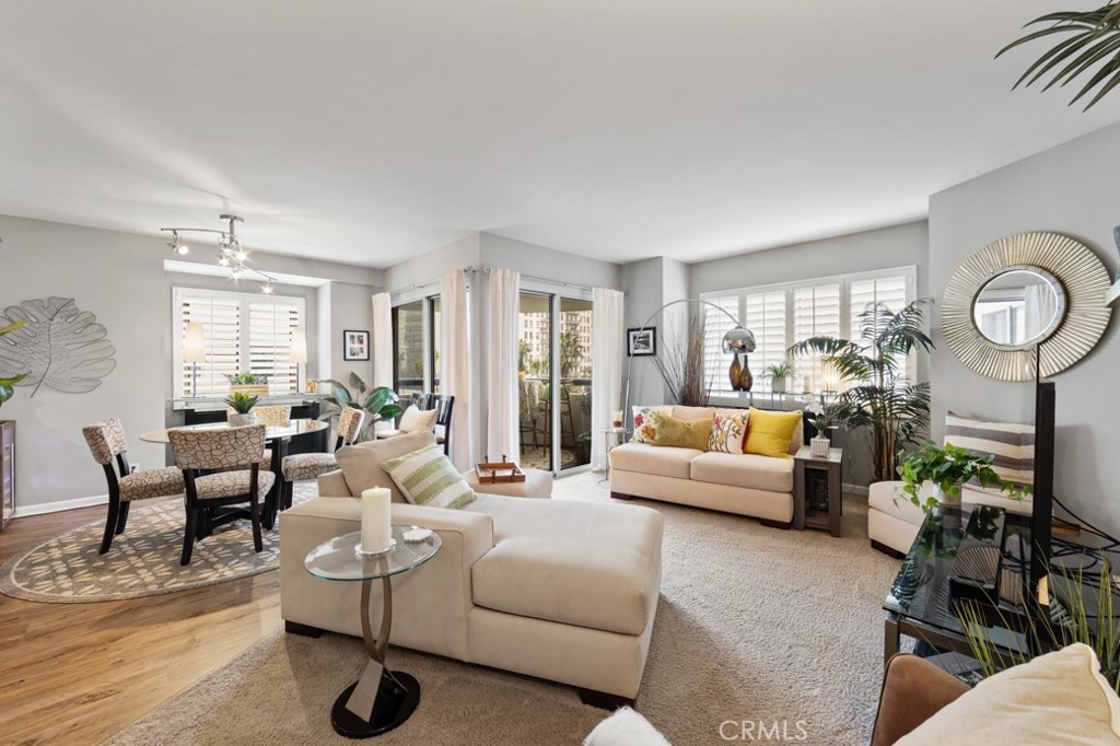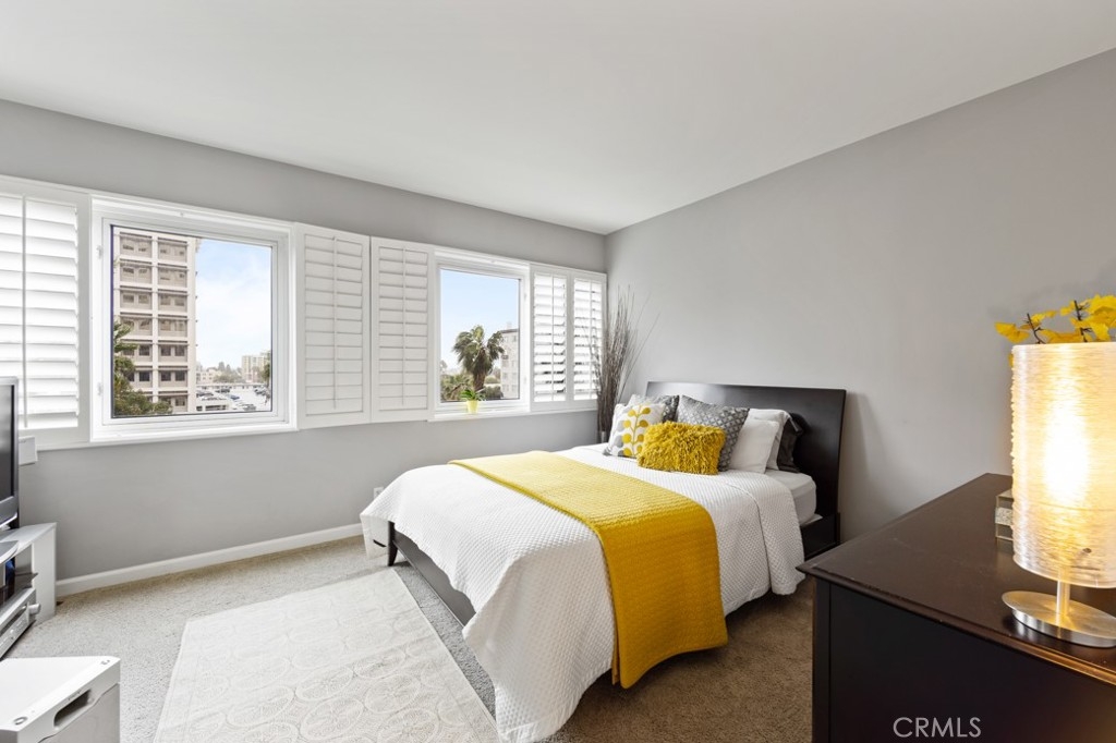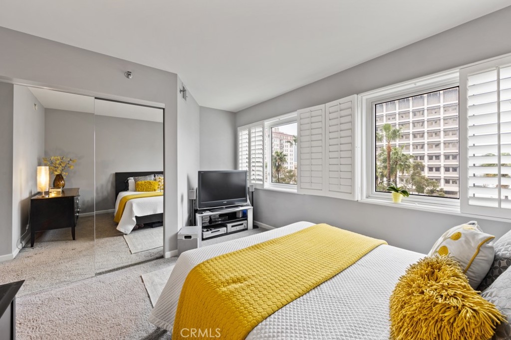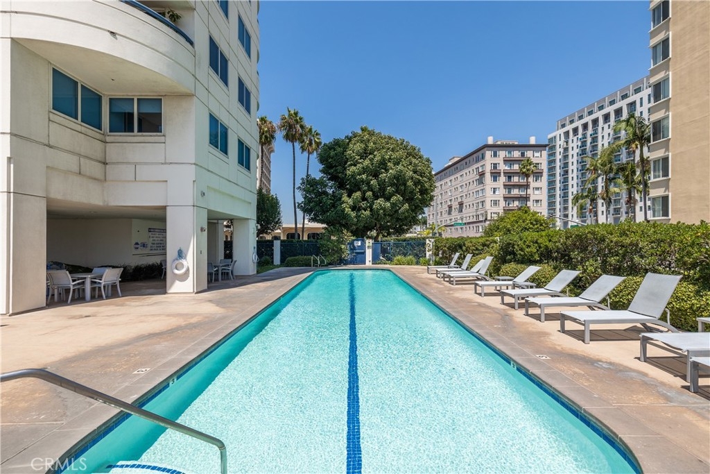 Welcome Home to this fabulous condo in the luxurious Harbor Place! This end unit has gorgeous city lights views and has one of the largest 1 bedroom floor plans in the building. This home is light, bright, and open, and the living space flows seamlessly to the kitchen, dining, inside laundry area, private covered patio, and towards the bedroom. The kitchen has been remodeled with Corian counters, high-end stainless steel appliances, and custom-finished cabinets. The bedroom is a great size and you can say goodbye to community laundry with your own laundry room featuring tons of storage. The bathroom is ultra-modern with sparkling over-sized tiles, beautiful cabinets, and a large soaking tub. Other speciality features include plantation shutters, plush carpeting, and two dedicated parking spaces. Harbor Place has a ton of amenities and includes a 24-hour full service desk and guard, ample visitor parking, a gorgeous pool and spa (currently being remodeled & planned to be complete before summer), a full gym, several lounges, a conference room, and stunning ocean views. Walking distance to Pine Avenue & the Pike, this Executive Suite condo has it all! **PROFESSIONAL INTERIOR PHOTOS UPLOADED SAT 3/11 AM**