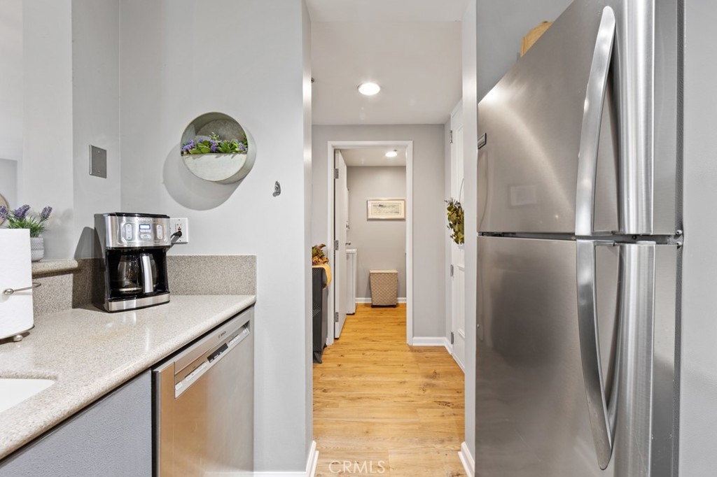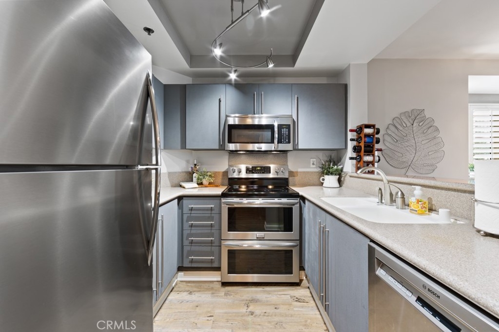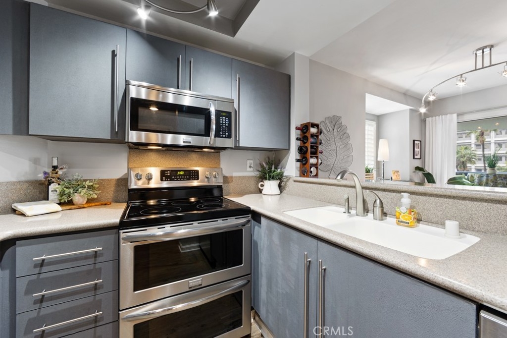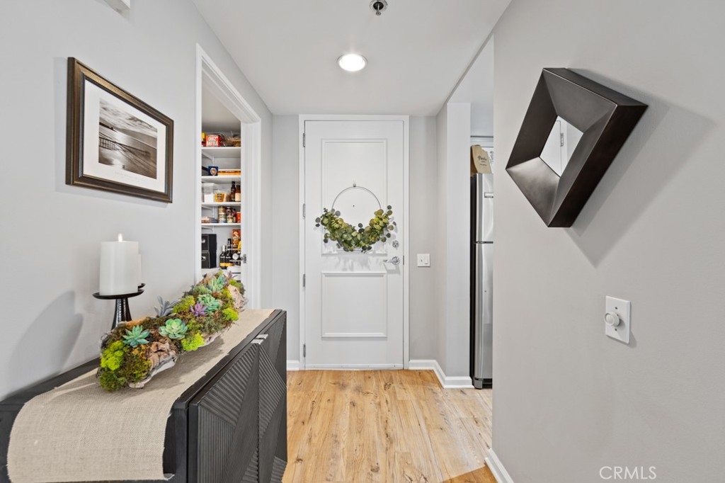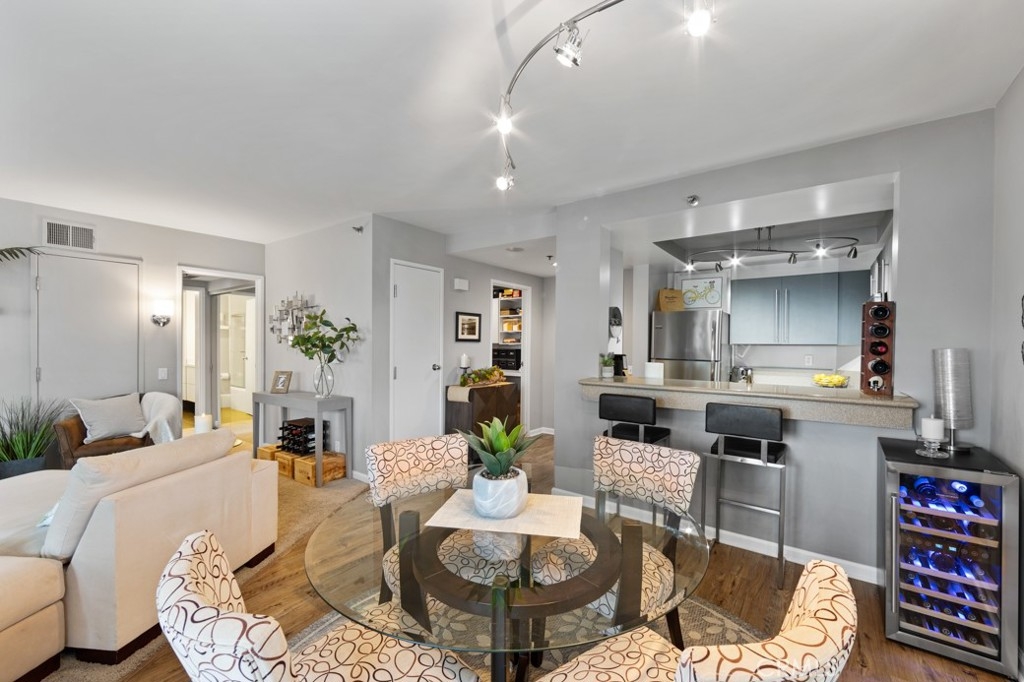 Welcome Home to this fabulous condo in the luxurious Harbor Place! This end unit has gorgeous city lights views and has one of the largest 1 bedroom floor plans in the building. This home is light, bright, and open, and the living space flows seamlessly to the kitchen, dining, inside laundry area, private covered patio, and towards the bedroom. The kitchen has been remodeled with Corian counters, high-end stainless steel appliances, and custom-finished cabinets. The bedroom is a great size and you can say goodbye to community laundry with your own laundry room featuring tons of storage. The bathroom is ultra-modern with sparkling over-sized tiles, beautiful cabinets, and a large soaking tub. Other speciality features include plantation shutters, plush carpeting, and two dedicated parking spaces. Harbor Place has a ton of amenities and includes a 24-hour full service desk and guard, ample visitor parking, a gorgeous pool and spa (currently being remodeled & planned to be complete before summer), a full gym, several lounges, a conference room, and stunning ocean views. Walking distance to Pine Avenue & the Pike, this Executive Suite condo has it all! **PROFESSIONAL INTERIOR PHOTOS UPLOADED SAT 3/11 AM**