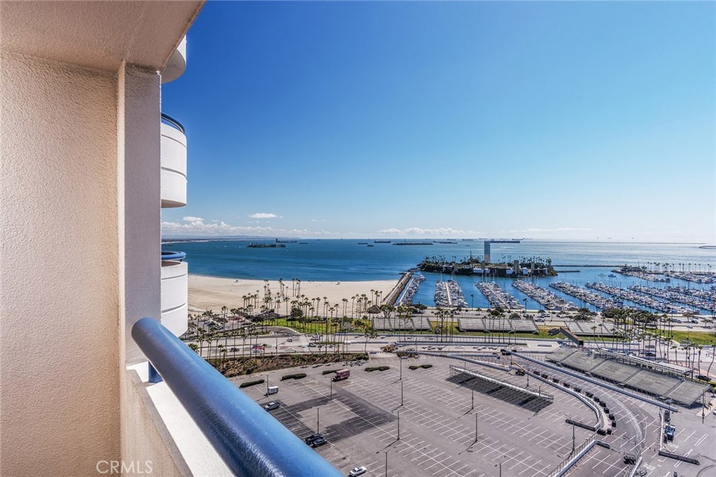 A rare opportunity awaits to own this recently completed renovation of this 21st floor panoramic Ocean view home in the Harbor Place Tower which is VA/FHA approved!! This designer home offers one of the premiere locations in the complex with a terrific private balcony and some of the best views in the city!! The recently completed interior upgrades and finishes are sure to impress! This executive residence offers unmatched views from every room of Catalina Island, ocean, marina, Queen Mary, mountain & city views! The kitchen has been extensively upgraded with stunning custom cabinetry, high-end stainless appliances, gorgeous kitchen Quartz counter tops and more! The master bath has also been remodeled and offers and gorgeous soaking tub, separate walk in shower with custom tile work and stunning dual vanity with custom quartz counter top and new cabinetry! The 2nd bath has been appointed with custom tile work that adorns the walls and flooring. The stunning new flooring and baseboards throughout look beautiful and are a terrific designer touch. The Harbor Place tower offers: 24hr guard, gym, pool, spa, sauna & more! This home offers a rare 2 parking spaces. The newly renovated 24 hour guarded lobby area is a simply stunning area to greet you and your guest upon arrival ! This is absolutely the most upgraded home to hit the market in Harbor Place Tower in sometime and offers a rarely available 21st floor location & unmatched views. Don't let this rare opportunity pass you by!