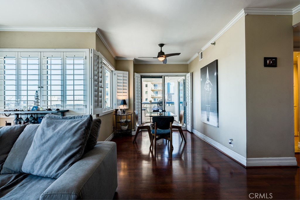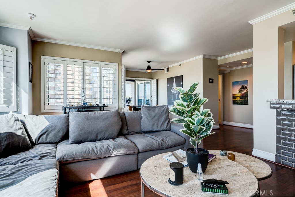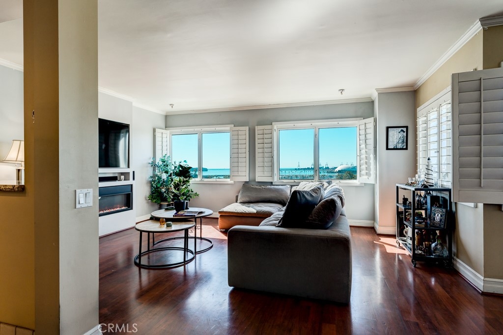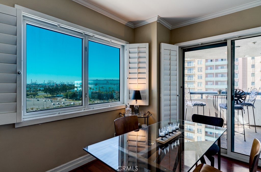 Beautiful ocean view condo in one of the most prestigious buildings in downtown Long Beach! It has Magnificent Ocean Views in the Luxurious "Harbor Place Towers". This Beautiful Waterfront Condo offers breath-taking Panoramic Views of the Marina, Ocean and City Lights along the Coast. Two balconies on each side of the Master Bedroom with Ocean and City Views from 7th Floor. A Must See! TURNKEY move-in ready. Kitchen has Stainless Steel Appliances included in the sale, Granite Countertop with Tile Backsplash. Crown Molding, Custom Cabinetry, Plantation Shutters throughout, Porcelain Tiled Entry in the Bedrooms and Bathrooms. Laminate red wood throughout Living Room, Dining Area and Hall. A separated dining area, Both Bathrooms are updated which includes Vanities with Silestone Quartz Countertops, Porcelain Tile with Mosaic back splash, separate oversized Tub in Master. A Hide away Laundry Area for Washer and Dryer. Enjoy resort amenities of 24/7 concierge, guard, social rooms, secure package lockers, large patios, resort style pool, spa , sauna, Nicely Equipped Gym, Promenade level available for Social Entertaining, ping pong table, meeting room, 80 guest parking spaces & more! The renovated 24 hour guarded lobby area is a simply stunning area to greet you and your guest upon arrival and includes a coffee room as well to relax! There is onsite management to attend to any needs and you can walk out your front door to the nearby ocean front boardwalk, Pine Ave Entertainment Street, The Pike entertainment venue, restaurants, nearby metro rail and so much more. This is the perfect urban oasis! Truly a rare offering to hit the market in Harbor Place Tower. This Luxury Ocean opportunity for you at a list price that will undoubtedly bring many suitors. The unit comes with 2 tandem Garage Parking Spaces with open side allowing parallel parking. Location is walking distance to the beach, Downtown variety of Restaurants, bars, coffee shops, shops, Long Beach Performing Art Center, East Village Art Dist., Convention Center Arena, the famous Pine Ave, the Shoreline Village, and the Experience of the annual Grand Prix from your very own balcony. The HOA fee covers water, hot water, sewer, trash , security and maintenance of the grounds. Information deemed reliable but not guaranteed; buyer to verify all information provided including but not limited to HOA rules, regulations.