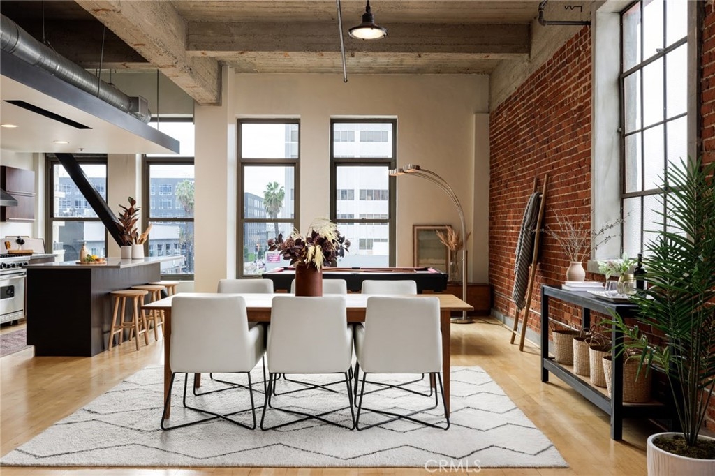 Welcome home to the iconic Insurance Exchange lofts! This building in the heart of The Promenade of Downtown Long Beach is one of the city's most unique and stunning examples of adaptive reuse architecture. Built in 1925 it was originally known as the Middough Building, then, in 1931 became known the Insurance Exchange Building. The unique architecture of this building and the clever rehab makes each unit a corner unit with an expanse of original brick, soaring ceilings and two walls of windows. The open concept kitchen with a massive kitchen island is outfitted with stainless steel Viking appliances, granite countertops and walnut hued custom cabinetry. Large sash windows let in west facing views and light, and a spacious walk-in closet provides generous storage. Deep soaking jacuzzi tub, walk-in shower, dual vanity and a separate guest powder room makes this loft as comfortable as it is architecturally stunning. Central AC and heat, secured entrance lobby, secured parking, separate private storage room adjacent to the unit and key fob entrance provides security and convenience. Registered as a historic building, it takes advantage of the Mills Act, a significant savings in property taxes for designated historically recognized buildings.