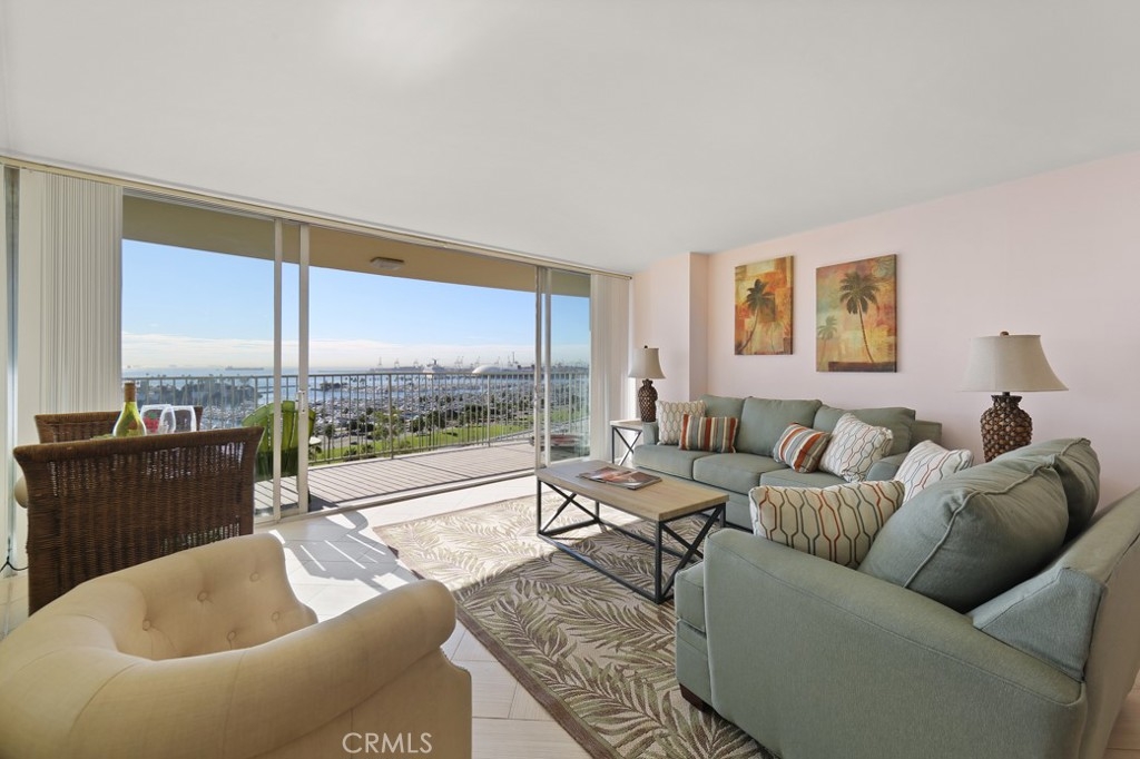 Iconic International Tower Condo unit #1606 with a beautiful views of the Ocean, Marina and coastline. Located on the 16th floor, with floor to ceiling windows and wrap around balcony boast amazing views from the living room and each bedroom of Catalina Island, Queensway Bay, the Queen Mary, Shoreline Village, Palos Verdes and more. Lovely tile flooring throughout, installed within the last 2 years. Built in appliances, stack washer and dryer included. Unit features 2 master bedrooms, one with a walk in shower and the other with a tub shower. Watch the Long Beach Grand Prix with friends and family from your balcony. Within walking distance of Restaurants, convention center, entertainment, shopping and Marina. Year round heated pool, spa. Enjoy the fitness center, meeting room, and 24 hour security. 2 parking spots 199 & 8 within the gated garage located beneath the units. No storage area.