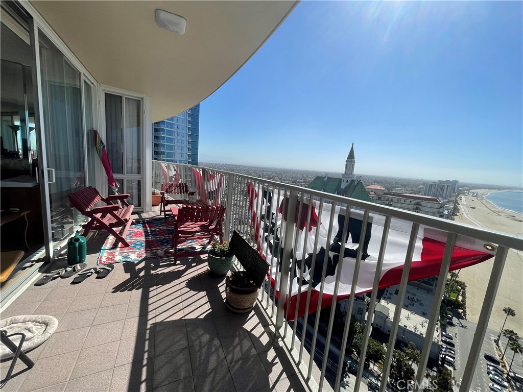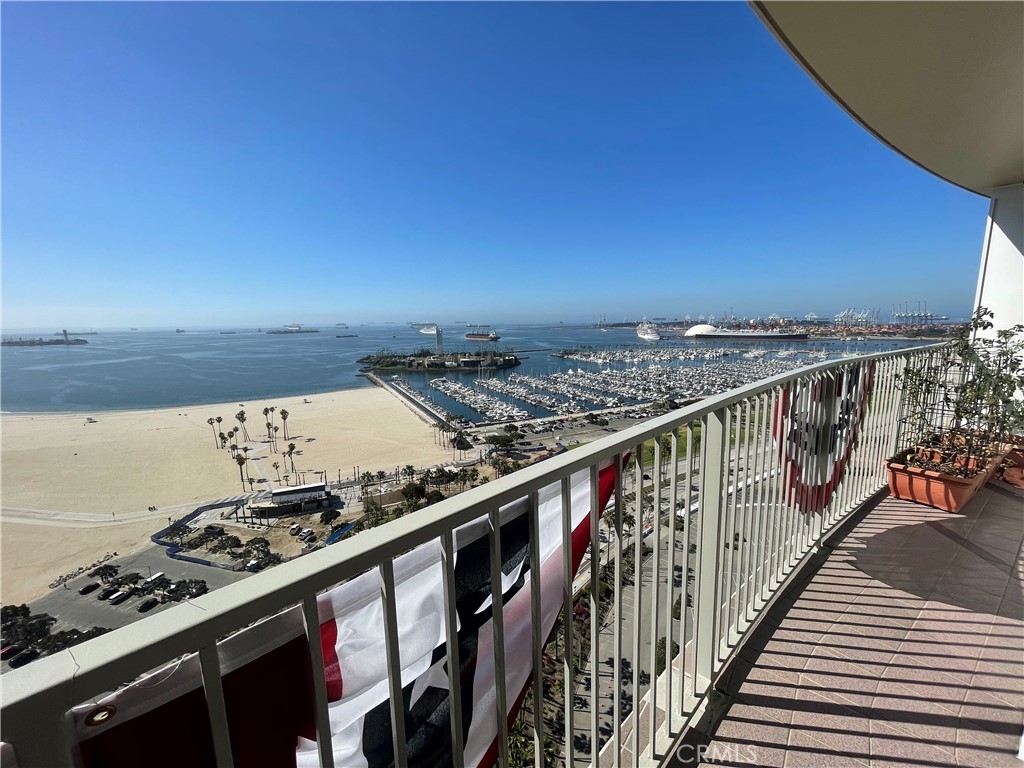 Rarely for sale International Tower "05" stack featuring panoramic ocean and coastline view. This is the premier location you have been waiting for! Enter your new home and all you see is ocean and sand! The wall of windows, from floor to ceiling, in front of you allows for a spectacular southern coastline view. Your wrap around balcony runs the entire length of the condo. The condo features 2 bedrooms and 2 bathrooms, inside laundry and large kitchen with plenty of counter and storage space. Enjoy the view from your dining area while entertaining. The living room has sliders opening to the private balcony where you will enjoy the sunrise, beach activities below, and twinkling lights at night. On either side of the living room are the bedrooms. Guest bedroom has wall to wall glass and slider to the balcony, with a private bathroom right outside the entry door. The main bedroom has an attached bathroom that has been remodeled with step in shower and stone tile everywhere. The water and sand view from the wall to ceiling windows and slider are phenomenal to wake up to!