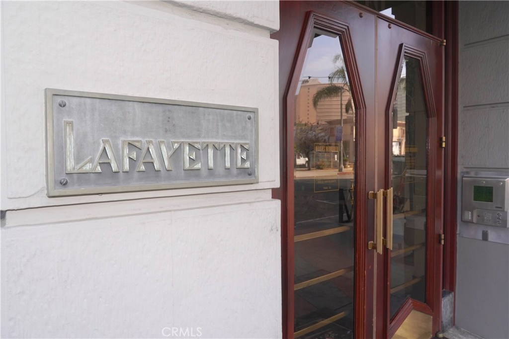 The LAFAYETTE Historical Condominiums, built in 1928, is a PRIZE location, situated in the trendy East Village Arts District. Just walk out (97 Walk Score) your door of this beautiful condo to several blocks of coffee shops, cafes, art galleries, boutiques galore, DTLB and more. The Art Deco inspired building has many amenities, Rooftop Solarium with panoramic views of the city and ocean coastline, outside barbeque area and dining space, a game room, a large fitness center/gym, storage space and a "pet washing area"! This freshly painted one bedroom/one bath condo boasts 726 sq. ft. and has views of the neighborhood from your kitchen dining area and living room from your picture windows! Must see to appreciate! A large bedroom has its own dressing area with extra closet space. Beautiful original green tile adorn the walls of the nicely appointed bathroom. Onsite laundry rooms have the latest technology for your convenience and a low HOA fee pays for water, hot water, insurance and building maintenance. This is a must see.