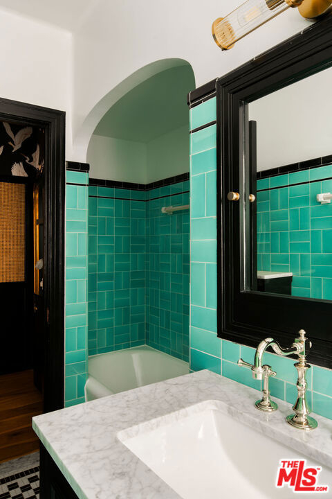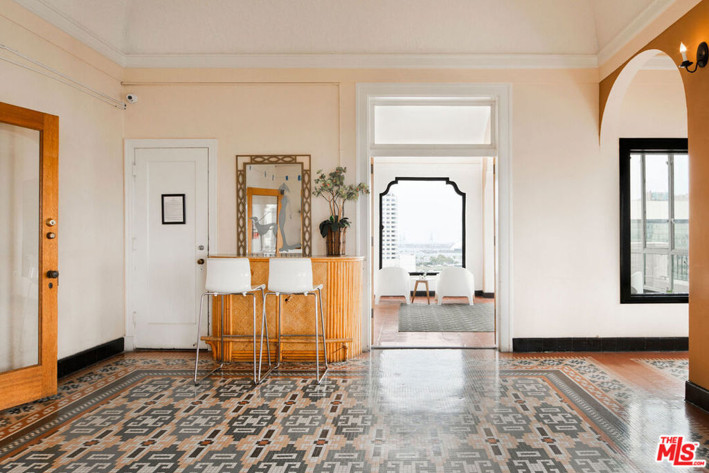 Welcome to The Lafayette in downtown Long Beach! This historic Art deco building is a landmark in the heart of the bustling East Village Arts District. With a walk score of 98, you'll never run out of things to do from dining, enjoying wine bars, shopping at the Pike, exploring museums, strolling the marina, attending the performing arts center, and so much more! This fully reimagined studio by prestigious builder, Rebuilt, has been effortlessly restored blending old-world charm with contemporary convenience. Indulge in the grandeur with a formal entry, light drenched living space, and built in bed alcove with picturesque windows. Adorned with a fabulous wallpaper accent, this sleeping sanctuary becomes an artistic focal point, merging style and practicality. Channel your inner chef in the newly remodeled kitchen, boasting marble stone countertops and stylish etagere shelving. The beautifully restored original bathroom is a unique retreat that offers a glimpse into the building's storied past. With a secured entry, a solarium, billiards room, outdoor entertaining spaces and a fully equipped gym this building has tons to offer creating a safe and fun environment close to it all!