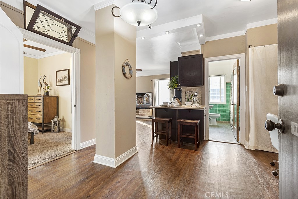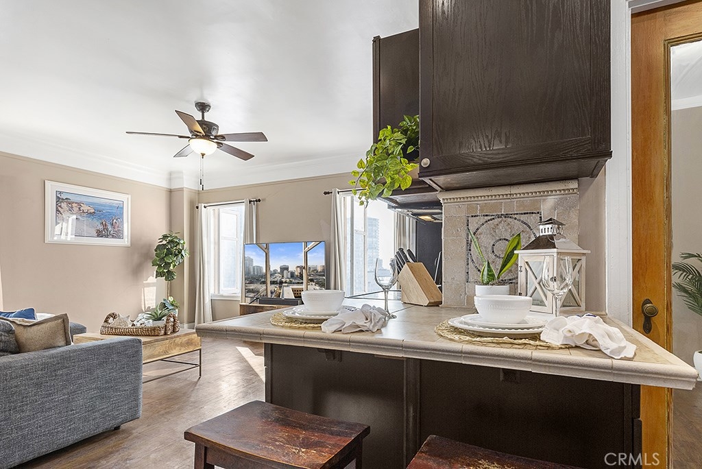 Welcome home to the Lafayette building in the heart of Downtown Long Beach. This condo has it all! 10th floor corner unit, open floor plan, storage spaces, excellent walk-ability, turnkey condition & a VIEW! Overlook Long Beach from the height of the 10th floor w/ several windows that fill the home with natural light & ocean breezes. As a corner unit you have 2 views! Two window oversee the wonderful City of Long Beach. Three windows open up to the Ocean, Queen Mary & Shoreline Village. Enjoy your ocean & city views after a long day during the sunset. The stunning kitchen & open floor plan allow for optimal usage of space. Tons of storage: full pantry, coat closet, 2 built in bedroom closets, lots of kitchen cabinets & bathroom cabinet! Have your own part of Long Beach history by owning inside the The Lafayette, "a landmark in East Village". The Lafayette was once a hotel built in 1928, appreciate apart of Long Beach's history as walk through the art-deco style building & features in the home. This is one of the best located condos; 10th floor at the very end of the hallway, corner unit, only one wall shared, & facing the ocean. Close to restaurants, shopping, entertainment, & public transportation! Enjoy some of Long Beach's closer monuments, such as, Shoreline Village, Queen Mary, Long Beach Convention Center, The Pike, Alamitos Beach, Catalina Express & even more! Love where you live & own apart of Long Beach, her history, & your personal Long Beach views. FHA approved!