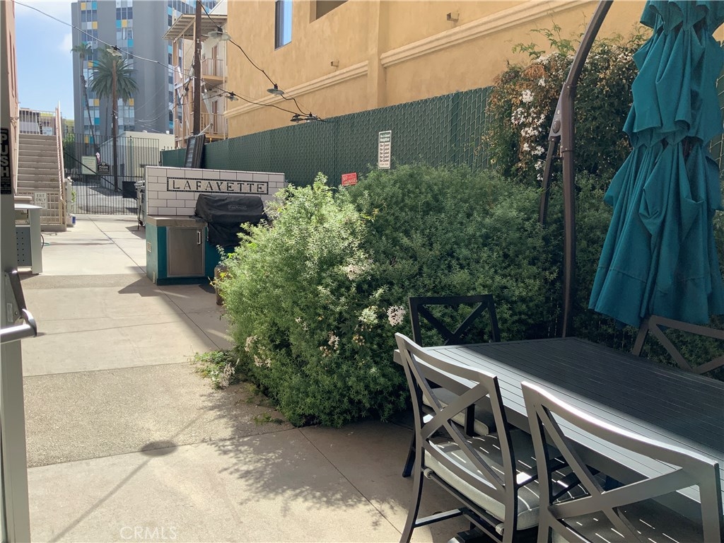 Back on the Market - Buyer backed out - his loss is your gain! Best Price per Sq Ft and Super Low HOA Dues. Location-Location-Location. Location is everything and this condo is in the hippest area of Long Beach in the historic Lafayette Building. Just two blocks up from Ocean and in the midst of the trendy East Village Arts District - this is the place to be. This large 1 bedroom End unit with a City/Street View is the best price for the size in this building and area. Walk to the Ocean, Pine Street, coffee shops, cafes, art galleries, DTLB, public transit, and so much more just outside the building. This beautiful building is a Pet Friendly complex set in a highly walkable neighborhood. This building has so many amenities - there is a large well equipped fitness center/gym, an outside bbq area, a rooftop gathering area, and a game room. Then head up to the Rooftop Solarium - formerly known as the famous "Starlight Ballroom" - that has out of this world panoramic city and ocean views that you can sit and enjoy!, This building has so much more that you need to see to believe. Onsite laundry is tech-savvy - pay via phone apps. There is parking next door and across the street available to rent. The low HOA dues pay for water, hot water, insurance and maintenance on this beautiful building, plus on-site management, and all the amenities available in the building. A very affordable place to call home - Building is VA and FHA APPROVED! Beach city living at it's finest!
