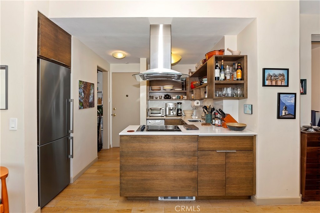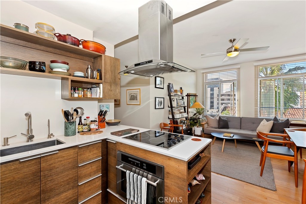 FHA and VA Financing Eligible. This luxurious and modern condo has it all including a perfect downtown Long Beach location and a reimagined space. From the moment you step in you'll appreciate the natural light and city views from the large windows. The engineered oak flooring with cork underlayment is beautiful as well as practical and matches the wood grains on the custom oak cabinets. In the kitchen, you'll love the modern appliances including a microwave and convection oven combo as well as the ample space that the pull-out blind corner pot storage and extra-large pan drawer provide. Sleek white quartz counters and backsplash are the perfect canvas for your favorite espresso machine or tea pots. Slim stainless steel refrigerator and pantry with shelves, drawers, and a pull-out trash bin drawer make it easy to organize your groceries and keep your kitchen clean. From the partially upgraded electrical to the side walls with double sheet rock to minimize sound transference, this residence is perfect for anyone looking for a quiet and comfortable place to call home. The added dual pane windows also improve the sound blocking and energy efficiency of the home. The custom frosted glass pocket doors open up to a gorgeous bathroom and walk-in closet. You'll also love the dedicated office/work area, perfect for anyone who needs a little extra space to get their work done. Custom light fixtures will provide your sophisticated lighting needs in the evenings. Bedroom area with a partition wall that provides added privacy and separate from work and living space. Bathroom with walk-in shower, modern fixtures, extra deep medicine cabinet and full-height mirror with storage. Walk-in Closet with custom fittings to maximize your storage needs. The Lafayette community features include a Solarium with breathtaking views of the pier and city, spacious gym, club/billiards room, rooftop deck, library, garden, and gorgeous lobby with reception service during business hours. Convenient downtown location to shops, restaurants, and entertainment. FHA and VA Financing Eligible.