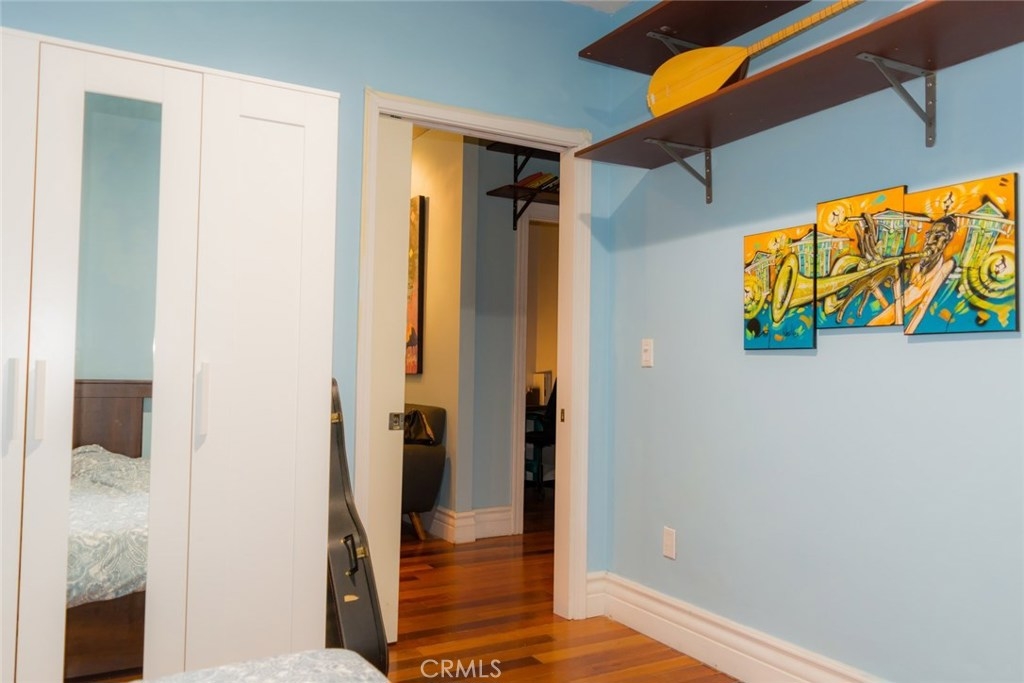Beautiful spacious two bedroom/two bath condominium in the historic Lafayette building with partial city lights view, 1,107 sq/ft living space, hardwood floors, 9ft ceilings, and an additional room for storage or office space. Dating back to 1928, the Lafayette is a historic East Village landmark in the heart of downtown Long Beach. Amenities include refurbished Art Deco style common areas, on-site laundry facilities, garden patio and BBQ, eleventh-floor solarium with views of the harbor and the L.A. basin, a large fitness center, game room, and on-site property management. Only two blocks away from the beach and easy walking distance to Pine Street, the Long Beach Performing Arts Center, and the Pike. Art galleries and unique shops and restaurants are just outside the front door. There is parking available on a parking lot in front of the building for $85.00 per month which is part of Lafayette but bill separately.
