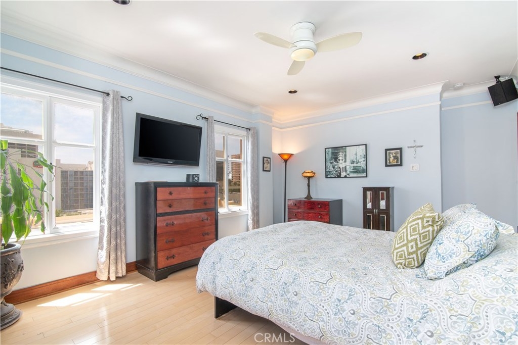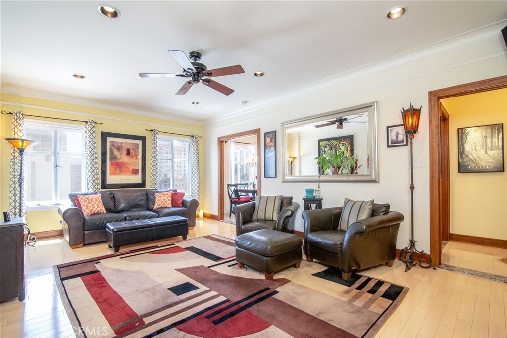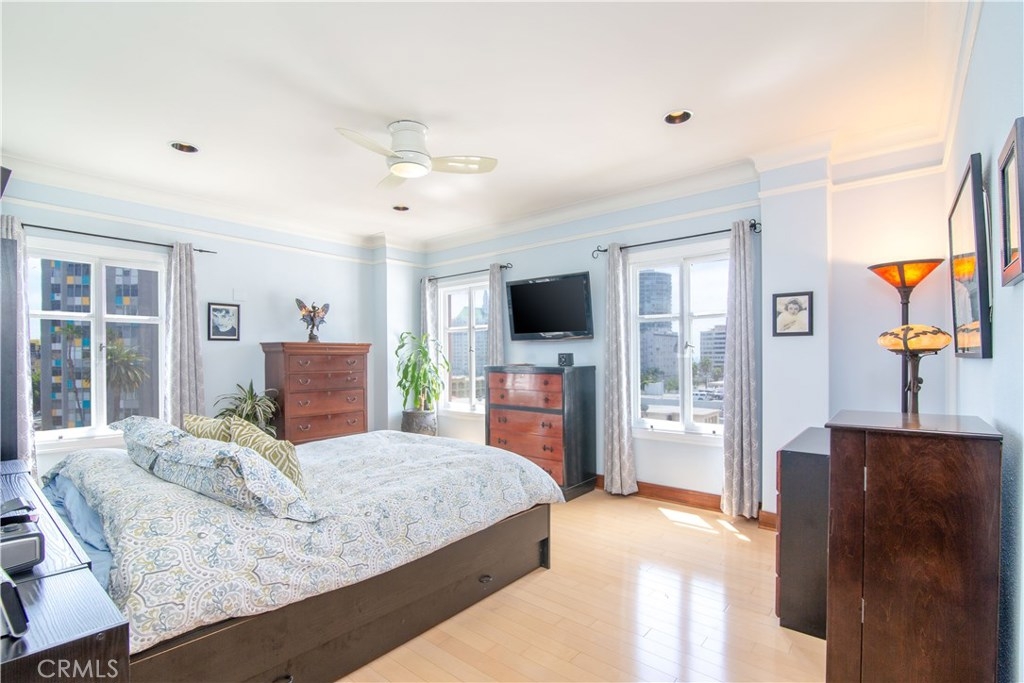 Among one of the rarest finds of 2019, the historic downtown East Village Art District's finest building the, Lafayette, is featuring a beautiful art deco masterpiece. With almost 200 units comprised over 3 buildings, there are less than 30 2 bedroom homes, making this a rare opportunity. The home is flooded with an abundance of natural light, filling the spacious 10-foot ceilings & highlighting the original wrapped mahogany baseboards. Life feels grand with the open concept floorplan, sweeping views, & gorgeous sightlines. The upgraded kitchen features high-end stainless steel appliances, granite counter tops, mosaic backsplash, and ambient lighting. Spend your time in the bright living room with recessed lighting, ceiling fan and built-in media center. The bedrooms have recessed lighting, ceiling fans, and no adjoining walls! The tastefully upgraded and brilliantly preserved full bathrooms feature barreled shower enclosures, jacuzzi tub, ample storage, marble inlays with counter space and gorgeous custom flooring installed with impeccable detail. Residents are privileged to gracious concierge services, a large gymnasium, entertainment room with pool, darts, shuffleboard & more. Outdoor accommodations include BBQ area & private rooftop area. An incredible walk score of 94, A+ location! Recently installed new BOSCH in-unit laundry. There are multiple private & public parking options all around the home. Seller owns an interest in 2 future parking spaces, available separately.