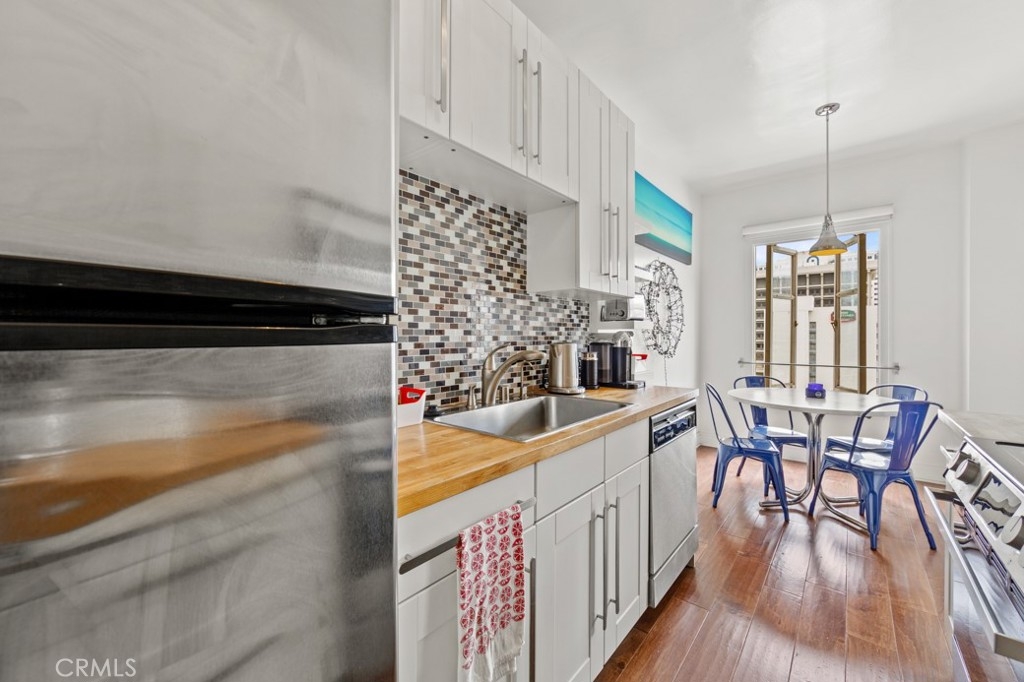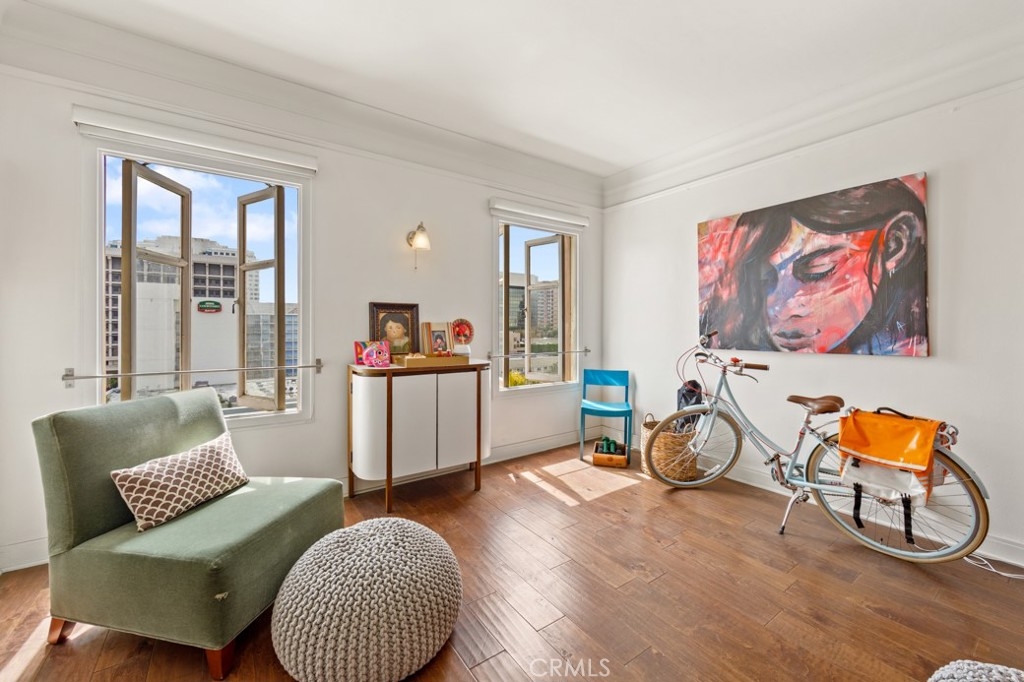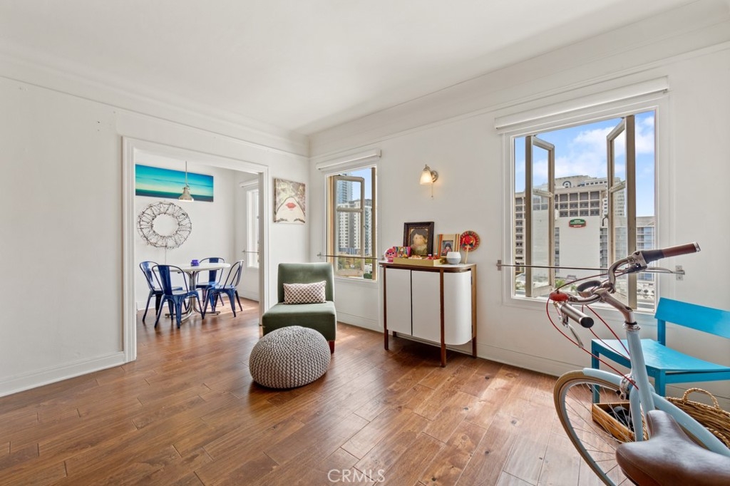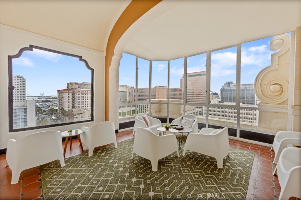 Welcome home to the beautiful and historic Lafayette building in downtown Long Beach. A perfect blend of charm, character and modern amenities throughout this gorgeous property. Unit #756 is a reimagined 7th floor condo that is open-concept living with south facing windows in every room with wonderful ocean breezes. You can see the marina, water and Queen Mary by day and sparkling city lights at night. As you enter you'll be greeted by soaring high ceilings, there are two ample sized closets, a very large living room, bedroom and plenty of natural light. The kitchen is perfectly situated for entertaining and the adjacent dining room has a big window with views! Next to the sleeping area is the bathroom that has the stunning period tiled floor and charm you want. Convenient laundry is onsite, just steps from your door and conveniently operates with an app or credit card. The Lafayette is a camera monitored & controlled access building with a formal lobby, concierge, 11th floor solarium with panoramic views over Southern California, 7th floor seating deck, BBQ area, game & club room and a fitness center so large you can cancel your gym membership. The list goes on! Your pet will be welcomed, breed restrictions apply. The location of the Lafayette places you at the beach, bike paths, coffee shops, art galleries, bicycle lanes, grocery, Wine district, Thai district, cider houses, nightlife and world class restaurants. This is a lifestyle you deserve. Welcome home to 140 Linden Avenue #756.