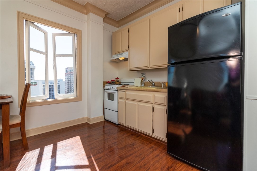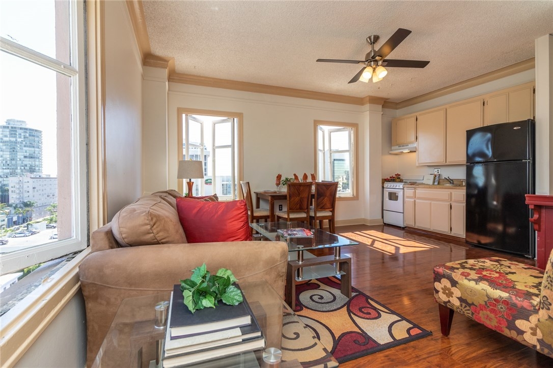 Views! Views! Views! Welcome Home To The Historic Lafayette Building Located In The Midst Of The Downtown Trendy East Village Arts District-The Place To Be! Just A Stone's Throw Away From The Sea! This lovely private end unit is on the 9th floor with an abundance of ocean,mountain and city views from every window! New Tasteful paint throughout, New range and hood, New Laminate flooring, Bathroom features the original 1928 tile, Tax rolls show as a studio however it has a 9 Ft. by 14 Ft. bedroom with a large coat closet behind the front door and A sliding double door closet with plenty of storage in the spacious dressing area,Large kitchen living room combination.The building has many amenities-Large well equipped gym/fitness center,outside sitting BBQ area,rooftop gathering area and A huge game room with A Pool table,Bumper pool table,Shuffleboard, Dart Board and Foosball table.Then head on up to the rooftop Solarium-formerly known as the famous "Starlight Ballroom" that has out of this world panoramic ocean and city views to sit and enjoy! Laundry room is on the units floor,There is parking next door available to rent,Low HOA dues pay for water,hot water,trash,sewer,insurance and maintenance on this beautiful building,Plus excellent on-site management And all the amenities available in the building. A Very Affordable Place To Call Home Sweet Home! Beach City Living At It's Finest! PET FRIENDLY! Make An Offer And This Historic Condominium Can Be Yours! VA And FHA Approved!