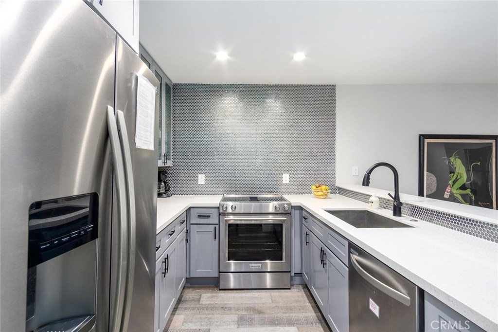 Remodeled Beautiful Modern Condo in Marina Pacifica. 2 Bed, 2 Bath. The open kitchen concept includes stylish shaker cabinets and quartz countertop complemented with a penny tile mosaic backsplash and under-mounted, farmhouse sink and complete with stainless steel appliances. The kitchen is in full view of the beautiful step-down living room with high gloss concrete floors and wood adorned walls which provide the feeling of warmth with the perfect ceiling fan for the space for added serenity. High ceilings and bright recessed lighting throughout. The master suit is comes complete with beautiful bathroom and lots of closet space with its own built-in cabinetry. Front Loading Washer/Dryer and 2 Parking Spots are included. Community amenities include 24 Hour Security, Gym, Sauna, 6 Pools/Spas, Private Bridge to Marina Pacifica Shopping Center. Walking distance to the beach, shopping, restaurants, and nightlife.