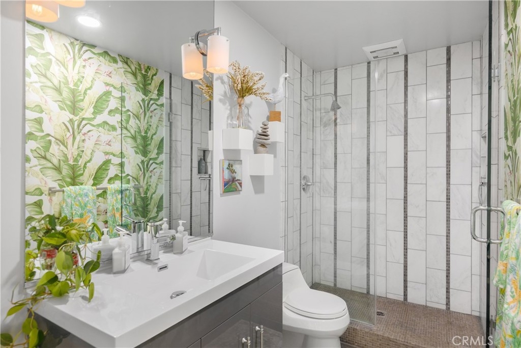 Welcome to 5322 Marina Pacifica Drive South, a perfect culmination of space, views and high end finishes wrapped into one private condo. As you make your way into the lower of two entries, you're greeted by the renovated and simplistic finishes leading you to the first guest en suite accompanied by personally curated high end touches and ample privacy. As you head down the hall, past the conveniently tucked away laundry and hall storage, you find yourself in arguably the most complete and sophisticated private primary en suite Marina Pacifica has to offer. With upgraded and personally designed bathroom finishes, multiple closets, with one being a full walk-in plus overhead storage, and views across the bay, you almost forget the soft touch suede walls lend to the calmness and height this bedroom has to offer. As if this isn't enough to embrace, making your way upstairs you'll notice the custom built in drink fridge hinting toward what's ahead. The living room views are enough to make you stop and take in exactly where you are, but that would be selling the second floor short in its entirety. The custom built in dining room bench truly maximizes dining and gathering potential, especially when it's accompanied by an upgraded kitchen with new high end appliances and bar seating for those special events. Just behind the kitchen is a 3/4 bathroom, also renovated to match the high end feel of every other room this condo has to offer. Once you find the second floor bedroom just off the second entry landing, you won't be surprised that it too is custom tailored to mirror the experience the rest of 5322 speaks. With over 1,800 square feet of usable living, two parking spaces, a vast array of high end personal touches and sunsets that truly embody what makes Marina Paficia so special, all you need is a drink and one of the two patios to slow down and take it all in.