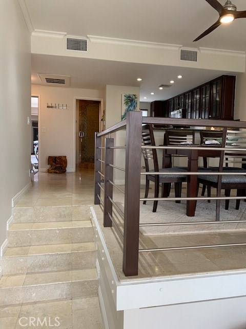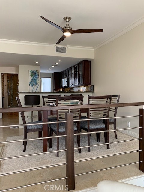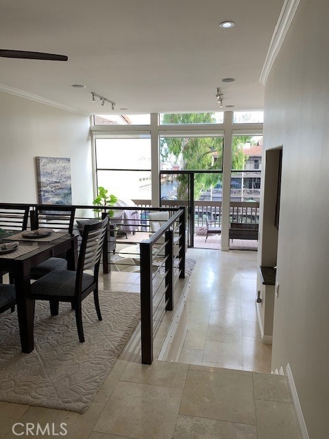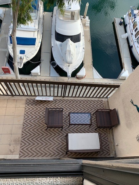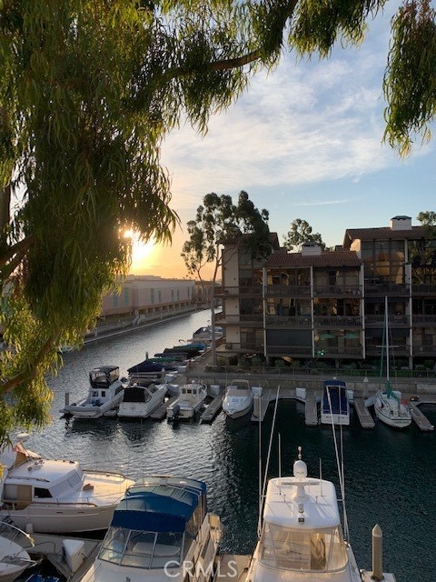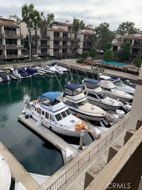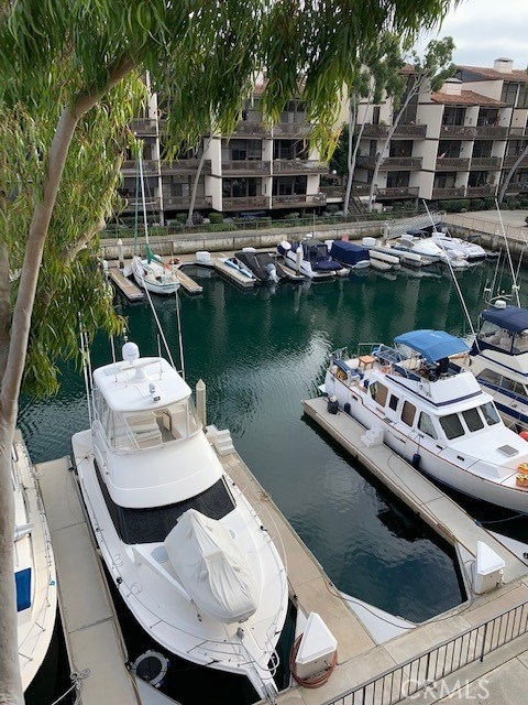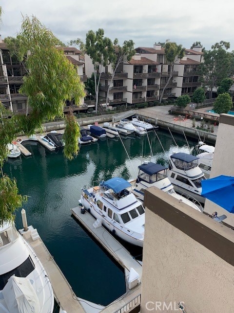 Highly desired Key 19 top floor unit with expansive views of canal,boats and pool. Main floor travertine flooring, bar, custom railings, 3/4 bath and gorgeous kitchen. Custom window coverings are included. There are two extra interior storage areas. All closets including the walk in master, have custom organizers. There is a full size laundry area upstairs. Each bedroom has ensuite bathroom. The top floor loft is currently used as home office and has panoramic water and mountain views! The HOA dues include 24 hour guard gated security, multiple pools, spas, fitness center, underground garage parking, elevator access from underground parking to the 3rd floor, water, trash, gas and 18 acres of maintained property. Shopping, restaurants, beach areas and the new 2nd and PCH center are conveniently located. Store your kayaks/paddleboards on their custom storage racks behind your 2 car garage spaces. Vacation where you live with resort style living at Marina Pacifica.