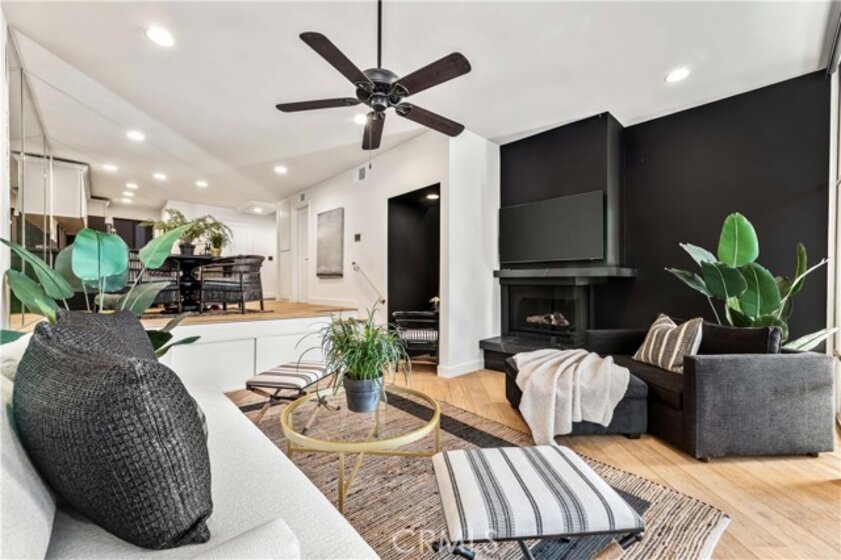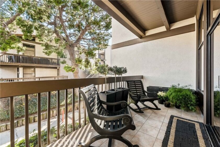 Discover the ultimate in sophisticated coastal living with this stunning, recently remodeled designer's home in Marina Pacifica. This unit is sold completely and beautifully furnished (turnkey), offering an immediate, effortless transition into a luxurious lifestyle. Every detail has been thoughtfully curated for style and comfort. The first-floor unit features a garden, private balcony, and assigned convenient underground parking. Step inside to find all-new, high-end Garrison Newport Beach engineered wood flooring throughout, artfully installed on the diagonal. The walls have been refinished with a smooth, updated texture, creating a pristine canvas for the stylish decor. The chef's ideal workspace awaits in the kitchen, boasting high-end Cafe' Appliances in matte black stainless and gold, including a counter-depth refrigerator, two-drawer dishwasher, and electric convection slide-in oven. The new kitchen cabinets feature a chic harbor white and matte black design, complemented by gold hardware and electric plates. Stunning unpolished porcelain countertops and a new black granite single-bowl sink complete this elegant space. Comfort extends to the living areas, with a sofa sleeper and chair sleeper allowing for three comfortable sleeping accommodations. The expanded fireplace, with its new unpolished porcelain hearth, is perfect for accommodating a large TV and mount. Enjoy peace of mind with a new 3-phase electrical panel, all new recessed lighting, and updated plumbing in both the bathroom and kitchen. The updated bath includes a new shower, fixtures, vanity, and toilet, along with a new high-end matte black LG washer and dryer. Experience year-round comfort in this northside unit, which stays at a perpetual 73 degrees all summer, leading to uncommonly low electric bills of just $125.00 a month all year. The outdoor spaces have also been meticulously maintained, with the balcony and French drains redone in 2024, a lush front garden redesigned with all new plants in 2024, and gorgeous new tile on the front porch. This home is truly a rare find, blending high-end finishes with practical luxury. The nearby waterways are set to be the 2028 Olympic venue for rowing events, adding a unique and timely appeal to this perfect boater's pied-a-terre or rental unit.