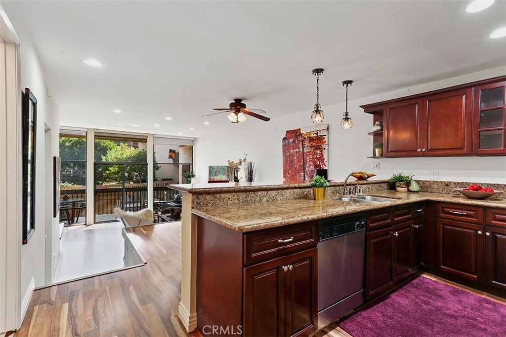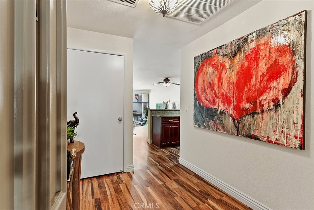 This is a rare one bed, one and a half bathroom "B" unit in the highly sought-after enclave of Marina Pacifica. Located on the first floor and featuring an beautifully updated kitchen with granite countertops and brand-new hardwood flooring throughout, this condo is an entertainers dream. The spacious living room contains a gas fireplace and opens onto the patio which offers a serene view of the pool, spa, and boats moored on the canal. This condo has central air and heating and comes with a washer/dryer unit inside. Marina Pacifica is centrally located on Alamitos Bay and is in close proximity to both Naples and Belmont shore with wonderful options for shopping and dining.