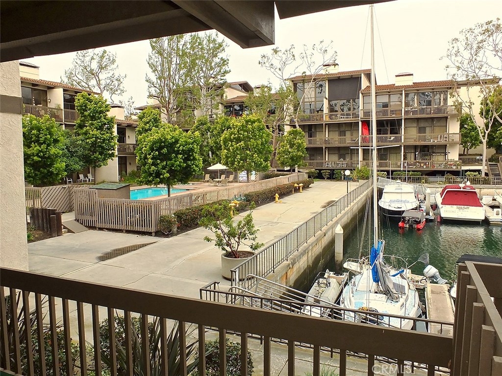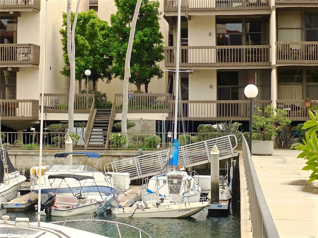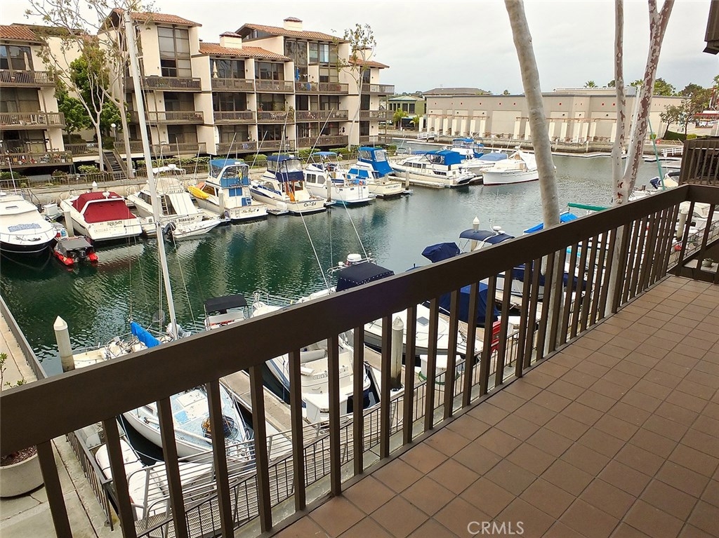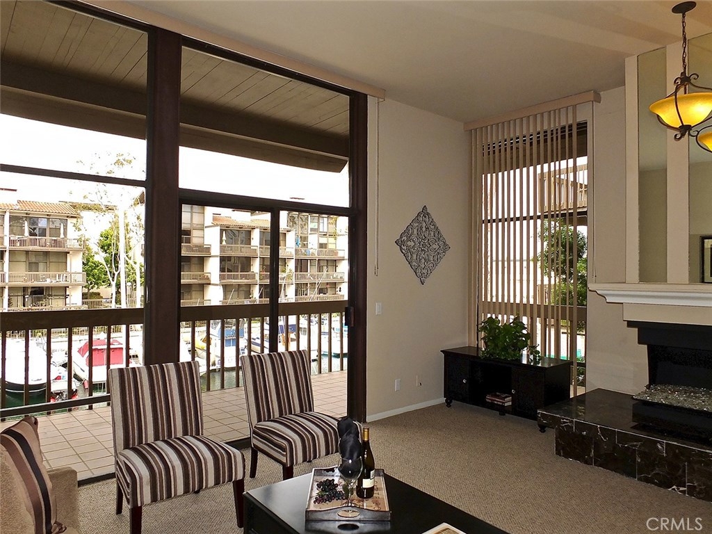 Welcome to this stunning end unit at water's edge! Great waterfront views of the boat slips toward the inlet of the Cerritos Channel and of the enclosed pool and spa area. It is the largest two bedroom floor plan in Marina Pacifica. Occupying two spacious floors, this unique layout features a large master suite with master bath and den/office area, a raised hearth glass-filled fireplace and sliders to a large wrap around balcony. The living area with glass-enclosed formal dining room and kitchen has its own raised hearth, glass-filled gas fireplace in the living room and a spacious wrap-around balcony. Price includes refrigerator, microwave, brand new washer and dryer. You'll just have to have a look at this one to see that it is truly a complete home on the water!