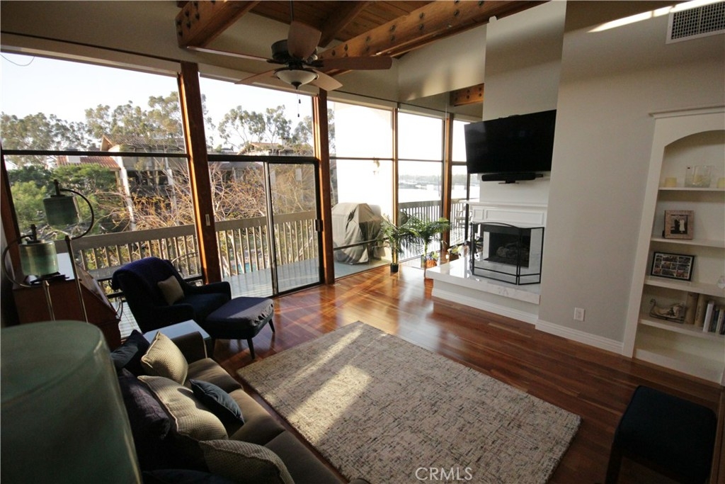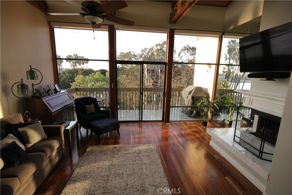 Key 16! Enjoy the fantastic sunsets from your private balcony in this spectacular one-of-a-kind top floor corner one bedroom with a panoramic view of Alamitos Bay! This superb property is undoubtedly the most stunning one bedroom in the Marina Pacifica community! No expense was spared in this highly upgraded unit, with custom designer touches throughout, including the addition of a luxurious new half guest bath; sand blasted vaulted ceilings with exposed beams and clerestory windows and custom motorized window coverings; cherry hardwood floors throughout; an en-suite master bath; a beautiful kitchen with open and vaulted ceilings, designer cabinets, granite counters and top-of-the-line appliances; custom designed cherry wood dining room railing and posts with wrought iron scrolls; gorgeous wood fireplace mantel with Italian marble surround and hearth; new HVAC and much more. This truly unique property must be seen to be appreciated!