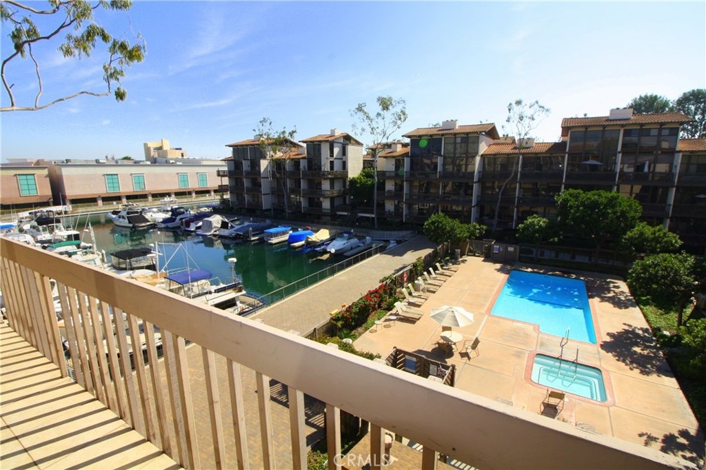 Top floor loft model overlooking pool and boat slips. Key 15. Nicely upgraded with granite kitchen, updated downstairs bath. Vaulted ceilings, upstairs loft bedroom with bath. 2 side by side parking spaces. Fireplace. Wet bar with wine cooler. Air conditioning. Tiled floors on main level. 24 hour guard gated water oriented community with 6 pools, spas plus clubhouse.