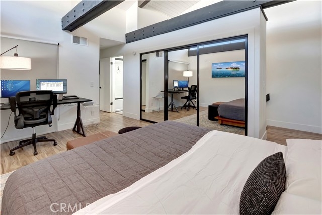 Welcome to this stunning, fully renovated loft-style residence located in the highly sought-after gated community of Marina Pacifica, one of Long Beach’s premier waterfront neighborhoods. Perfectly situated in Key 15, this top-floor unit offers soaring 30-foot ceilings and a dramatic wall of windows that fill the home with natural light while showcasing tranquil views of the marina. The open-concept living space features warm wood-style Vinyl flooring, a sleek modern kitchen with quartz countertops and stainless-steel appliances, and a cozy sunken living room complete with a gas fireplace. Step out onto your private balcony to enjoy your morning coffee or evening wine while overlooking the boats gently swaying in the water below. Upstairs, the loft bedroom offers privacy and style with exposed beams, 2 large closet's with custom cabinetry plus shelving, and a beautifully updated en-suite bath. The home also includes a second full bathroom downstairs and two dedicated parking spaces, park your cars or even a small boat! Residents of Marina Pacifica enjoy resort-style amenities including six pools and spas, a fitness center, clubhouse, and easy access to the marina for paddle boarding or Duffy boat rides. The location couldn’t be better, just steps from shopping, dining, and entertainment at the Marina Pacifica Mall and 2nd & PCH. Whether as a primary home or coastal retreat, this turnkey property offers the best of Long Beach waterfront living.