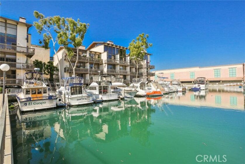 The most popular single level floor plan in Marina Pacifica. You'll love the life style of living by the water and enjoying the views. Within walking distance of the new PCH and 2nd Shopping Mall, the values are expected to rise with completion of the Center. Beautifully updated this 3 bedroom, 2 bath water view home is perfectly located next to the quiet pool and spa off the bay. Classy bamboo and Travertine stone flooring throughout. A modern kitchen with stainless appliances, custom cabinets and granite counters. 2 beautifully updated bathrooms. A fun wet bar for entertaining. 10ft high Hunter Douglas Automated window blinds for privacy and when open gives you the feel that you are outside. A romantic fireplace in the sunken living room.The master suite boasts a large walk-in closet with elegant built-ins and of course a private bath. A large 35 ft patio with Travertine stone overlooks the pool and spa. Two side by side parking spaces in the garage. This guard gated waterfront community is ideally located next to shopping, dining and plenty of water sports.