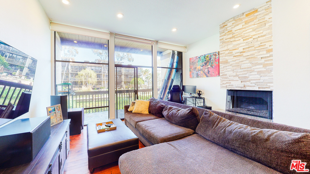 Premier Key 12 location in the renowned Marina Pacifica. This first floor 1-bedroom 1-bathroom has the perfect combination of convenience, privacy, views and sunlight. High ceilings and enormous windows fill the open concept kitchen, dining and living room with warm light throughout the day, while the lush landscaping offers unique privacy. Relax on the enormous patio in front of the meticulously landscaped pool areas with views of Mothers Beach and the Marina. This spacious condo has been refined with hardwood floors, travertine tile, gas fireplace, full-size interior laundry, wet bar, large updated kitchen and central AC/Heat. The prestigious Marina Pacifica development is set on a sprawling ~18-acre park-like peninsula boasting 6 pools, hot tubs, marina access, a fitness center, subterranean parking, generous guest parking and 24-hour security with gated access. Short walk to Whole Foods, Trader Joes, Gelsons, Coffee shops, renown dining, theaters, Seal Beach and oceanside nightlife. This is truly an amazing property in a dream location.