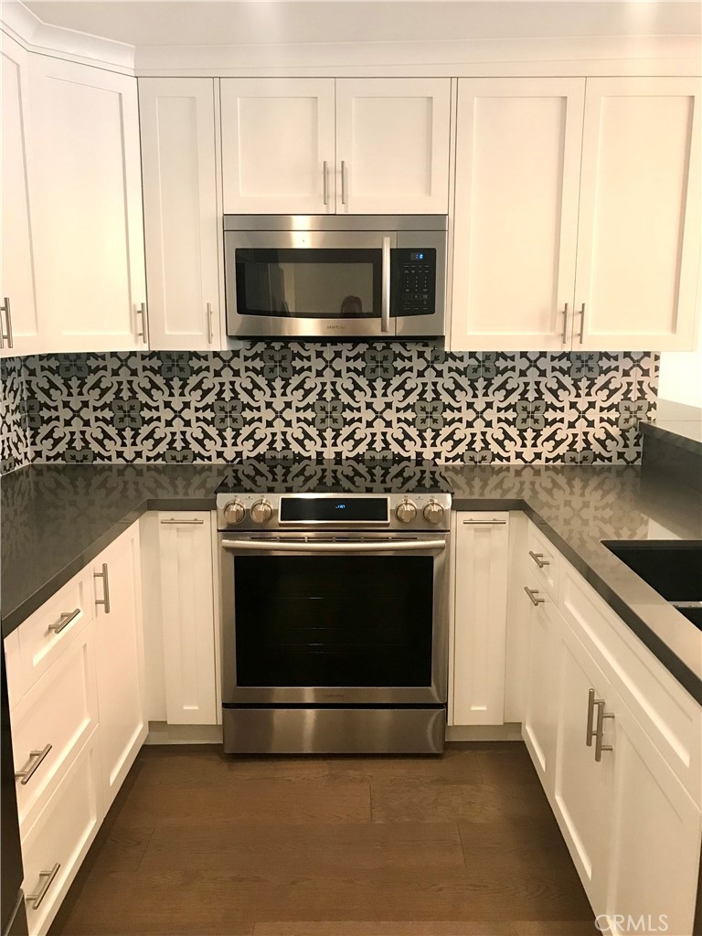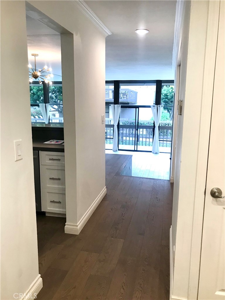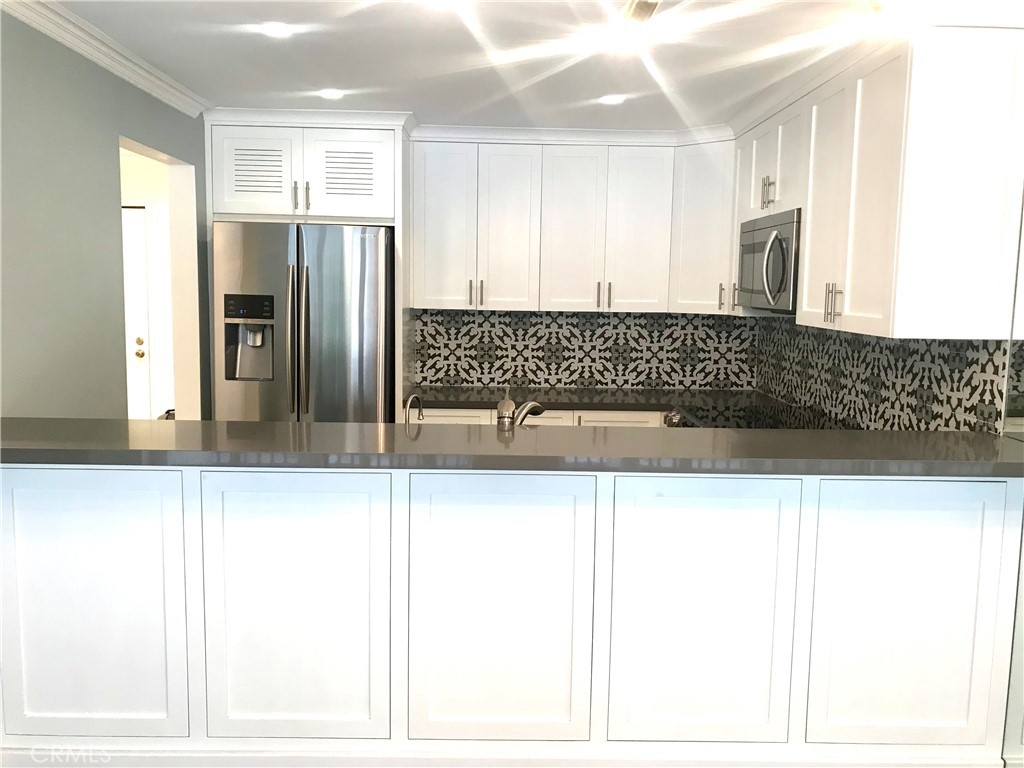 Beach living at its best in this updated 1-bedroom with large balcony overlooking the pool and canals. Designer upgrades throughout creating a clean, crisp, modern and bright floor plan. Kitchen features shaker style soft closing custom cabinetry with under cabinet plugs, Silestone countertops and stainless steel appliances. Open and spacious step-down living room with large floor to ceiling mirrors, fireplace, built-in office space, and a sliding door leading to the balcony. Recessed lighting throughout. This home boasts hardwood flooring in entry, kitchen and dining area and an upgraded bathroom. Full size washer and dryer is conveniently located in the hallway between the kitchen and dining area with closing doors. Marina Pacifica is a 24 hour guard gated community with six pools and spas, new remodeled fitness center, 18 acres of lush landscaping, a marina and attached footbridge connecting us to shops, restaurants, AMC theater and Ralphs. The newly constructed 2nd and PCF is conveniently located across the street and Naples Island is a short walk or duffy ride away. This turnkey first floor home is move-in ready. A true gem.