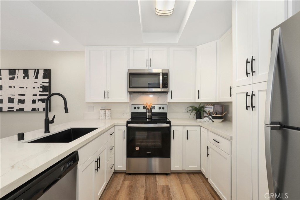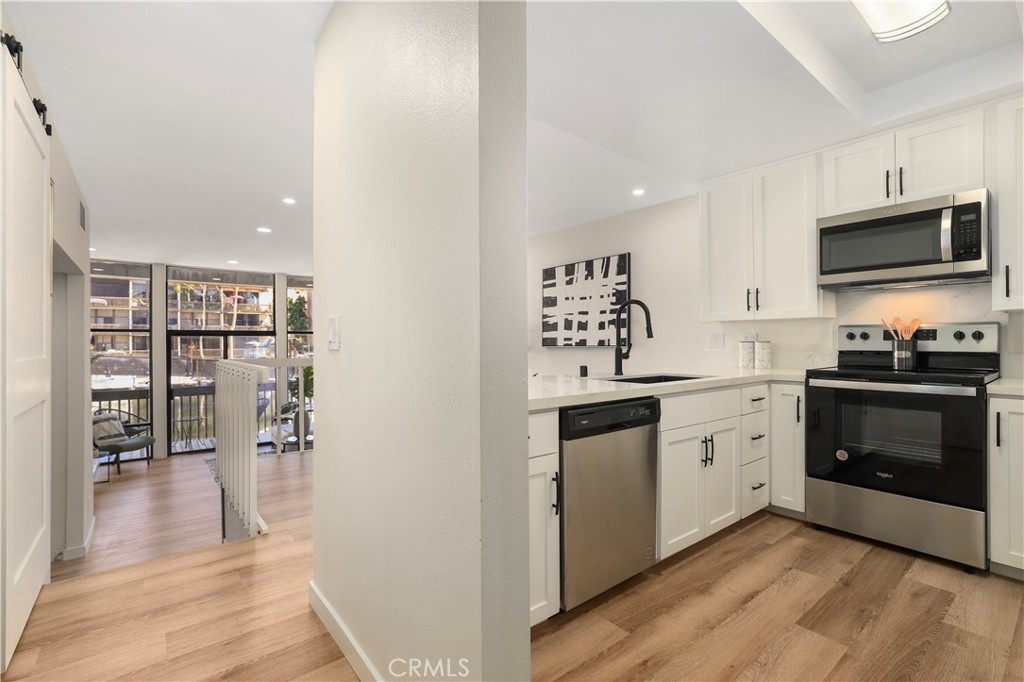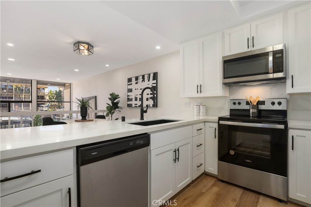 Ask me about Seller buying down your buyers interest rate!!!! Experience the epitome of luxury living at this exquisite waterfront resort-style condominium complex spanning 18 acres. Boasting 24-hour security, this meticulously renovated one-bedroom, one-bathroom unit caters to every buyer's desire. The kitchen exudes elegance with its quartz countertops, shaker cabinets, and stainless steel appliances, seamlessly flowing into the dining and living areas. Entertain guests at the bar area, complete with a sink, while the laundry room features stylish barn-style doors. Indulge in the cozy ambiance of the fireplace in the dining and living room, where stunning views of the bridge and marina unfold. A touch of musical charm may even grace your patio from occasional live band performances. The bedroom offers ample space, adorned with a closet and ceiling fan, conveniently accompanied by an adjacent bath. Situated on the first floor, accessibility is effortless, allowing you to enjoy the amenities this community has to offer. Enhancing your experience, the property boasts six pools, spas, Koi ponds, fountains, a clubhouse, and a fitness center. This idyllic location is in close proximity to Naples and Belmont Shore, as well as the convenience of Second and PCH shopping center, Gelsons, and Whole Foods, ensuring a lifestyle of unparalleled luxury and convenience. And as a bonus, it has two side by side parking spaces with storage. Don't miss this one!