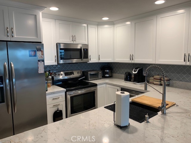 What a charmer! This one bedroom one bath condominium in the incredible Marina Pacifica community has been beautifully updated. Look at the remodeled kitchen with stainless steel appliances, granite counter tops and designer glass tile backsplash. Enjoy the corner fireplace in the sunken living room that offers floor to ceiling windows with an expansive view along with a peek-a-boo water view. And relax on your own private balcony. The bath has been beautifully remodeled with an inviting walk-in shower. There is tons of storage in this home and 2 deeded parking spaces in the subterranean garage with elevator access. The community offers multiple pools and spas, a fitness center, and a 24 hour guard gate. Add to this the beach, shopping restaurants, movie theaters, water sports, and so much more just a stone's throw away. Who will be the next fortunate owner of this lovely coastal home?