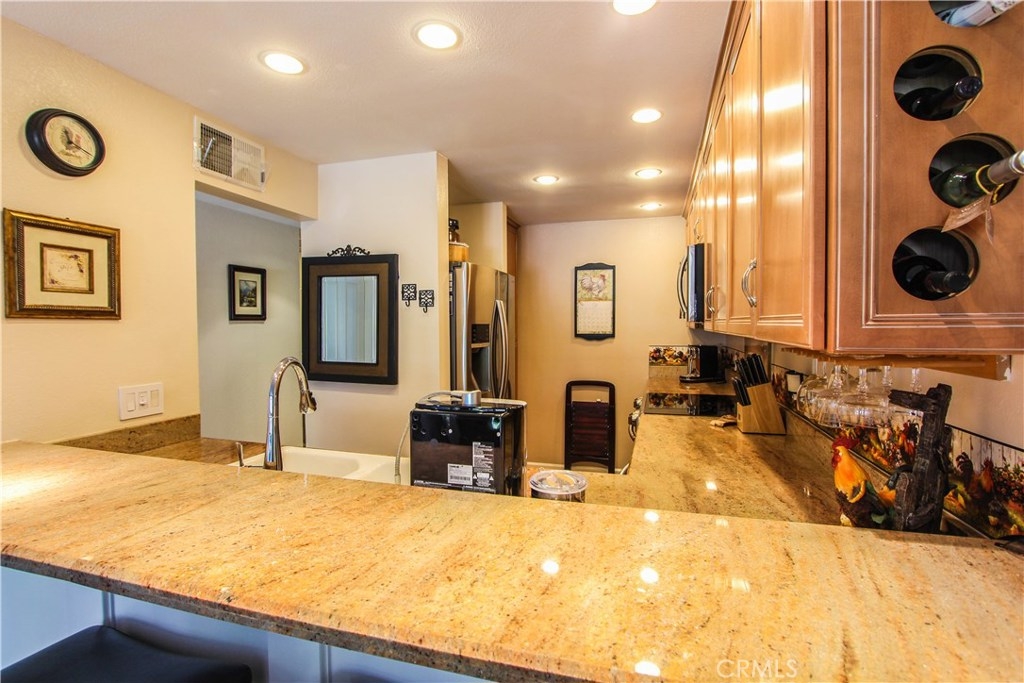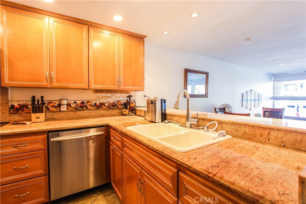 Turnkey Marina Pacific Model D One Bedroom + enclosed den overlooking verdant landscaping, pool, spa, views to Marine Stadium from the private tiled balcony. Fantastic convenience and walkability in this 24/7 Guard-Gated Community across from the new 2nd & PCH Center & The Market Place. Stroll across the footbridge to Marina Pacifica Shopping Center for Ralph's, AMC Movie theater, Barne's & Noble, Lucille's & CVS. Gelson's, Whole Foods, and Trader Joe's are just minutes away. Enjoy a five-minute bike ride to Naples & Belmont Shore, launch your small craft into Marine Stadium from Davies Launch. Enjoy kayaking, paddle boarding, jet-skiing, small boating adventures through Alamitos Bay. Walk to the weekly Farmers Market. This residence features in-unit laundry, newer custom cabinets, granite countertops, SS appliances, recessed lighting, large breakfast bar, a totally open concept, updated fire on ice Fireplace in the living room, new central AC & heat, new tile in entryway, hallway, dining & baths, new doors, walk-in closet in Master, new carpet in living, Master, & den, new paint throughout, a gigantic storage area (fully finished) is hidden under the dining room & den. The double high windows (with blackout shades if needed) let in the cool ocean breezes & warm Southern CA sunshine. Located in key 8 with 2 parking spaces. HOA boasts 6 pools & spas, fitness center, clubhouse, EQ insurance, & on-site mgmt office. Enjoy the Lifestyle!!