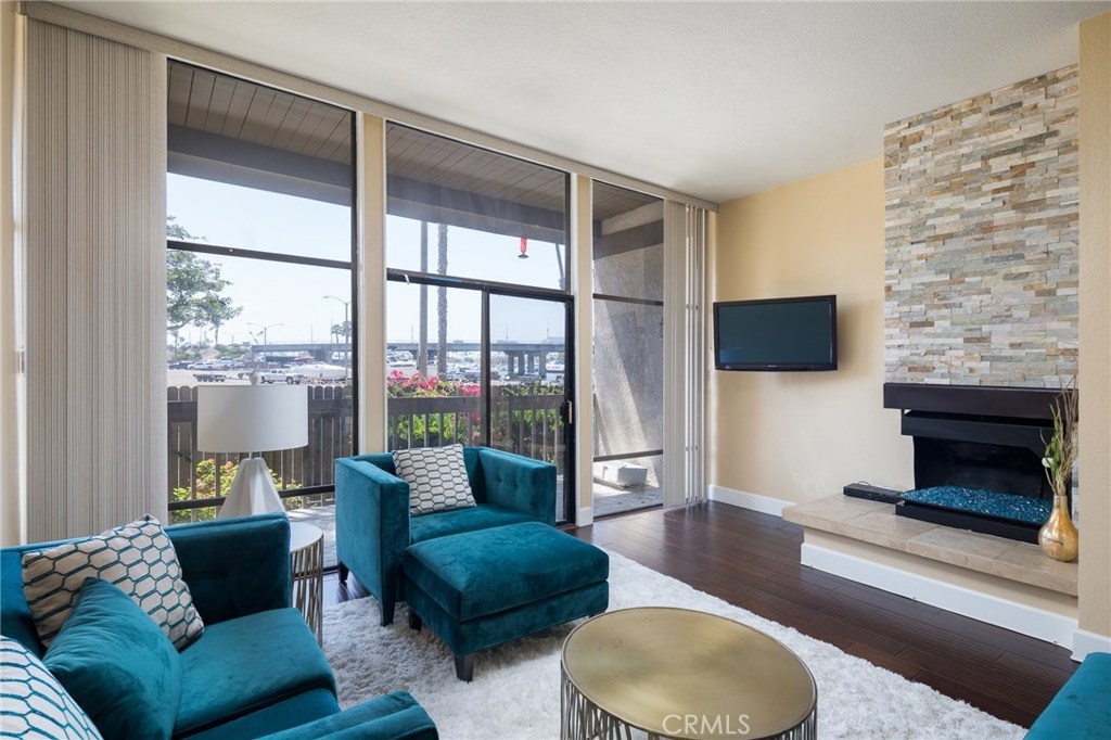 Welcome home to this exquisite modern condo in the highly desired Marina Pacifica community. This home embodies a contemporary and chic design with the wonderful amenities of a waterfront community. Every day enjoy waking up with a view of the water and the 2nd Street bridge without any neighbors in sight. The remodeled kitchen boasts a stunning design with dark cherry custom cabinets, concrete countertops, high-end Viking appliances, and a beautiful glass tile backsplash. The kitchen and dining area overlook the family room equipped with a gas fireplace and floor to ceiling windows. The Marina Pacifica community is famous for it's waterfront access, walkability to several popular shopping centers and dining options, and resort style amenities throughout. The ability to walk, ride a bike, kayak, or boat to just about anything you could hope for is just one of the features that makes this community so desirable. This stunning home truly has it all so come see it for yourself and discover your own waterfront oasis.