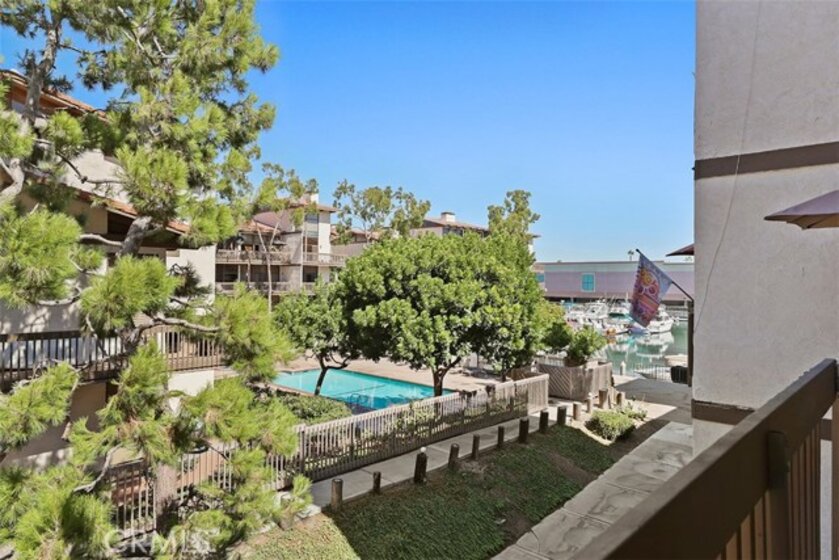 Welcome home! This turnkey one bedroom, one bathroom condo is a corner unit in Key 11. This second floor condo is light and bright with a great view of the pool as well as the bay! This updated home features new carpet and paint throughout, ceramic tile flooring, a gas fireplace, inside laundry, air conditioning, a hidden home office closet and TWO subterranean parking spaces. Marina Pacifica is a 24hr guard gated community with six pools and spas, fitness center, 18 acres of beautiful landscaping, and a marina. This unit is a must see!