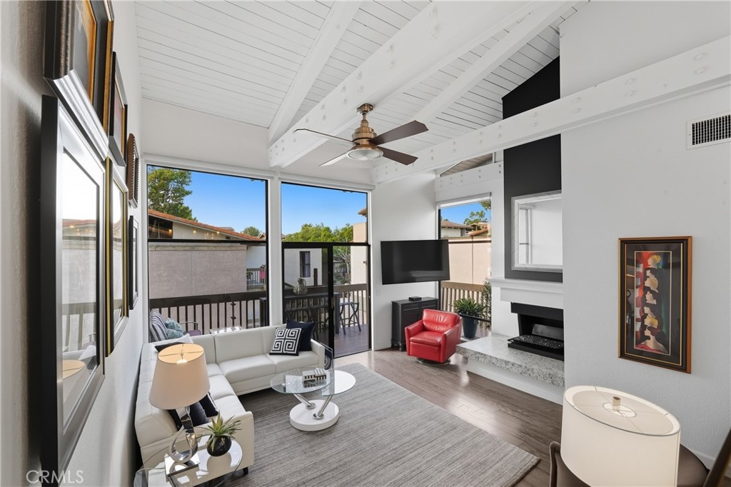 Sophisticated and extensively remodeled, this one-bedroom plus den residence at 7327 Marina Pacifica Dr S offers impeccable style, comfort, and beautifully designed living spaces. Featuring vaulted, beamed ceilings and abundant natural light, this thoughtfully renovated home feels both open and inviting. From the private balcony, enjoy serene views of the lagoon and Alamitos Bay — the perfect spot to unwind and take in the coastal ambiance. Every detail has been elevated, from the custom cabinetry and built-ins to the elegant flooring and redesigned bath. Enjoy resort-style amenities including six pools, three spas, a fitness center, and a clubhouse — all within this 24-hour guard-gated waterfront community. Just across the private footbridge, you’ll find convenient shopping, dining, and fitness options, while 2nd & PCH is right across the street with fine dining, boutiques, and Whole Foods. Nearby Naples Island and Seal Beach add to the vibrant coastal lifestyle that makes Marina Pacifica one of Long Beach’s most desirable addresses. With approximately 1,012 square feet of well-planned living space and two assigned subterranean parking spaces, 7327 Marina Pacifica Dr S perfectly combines sophistication and coastal ease in an exceptional waterfront setting.