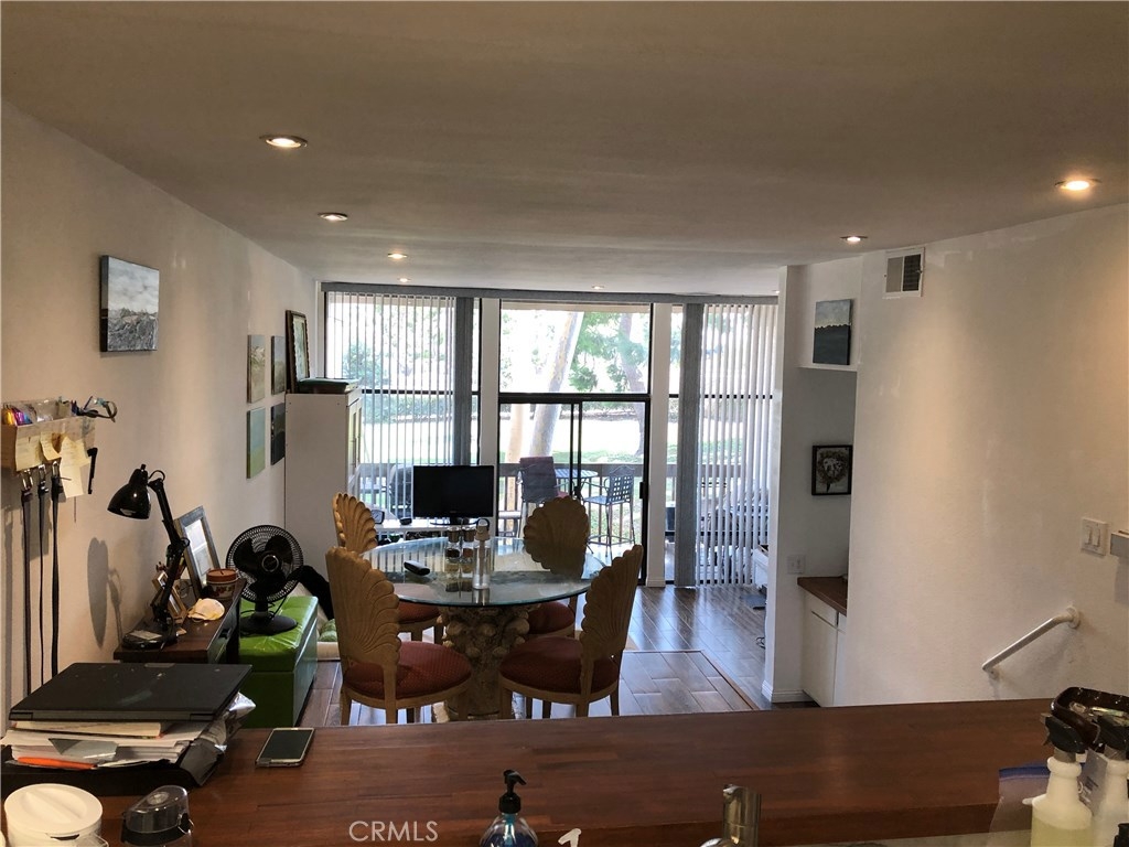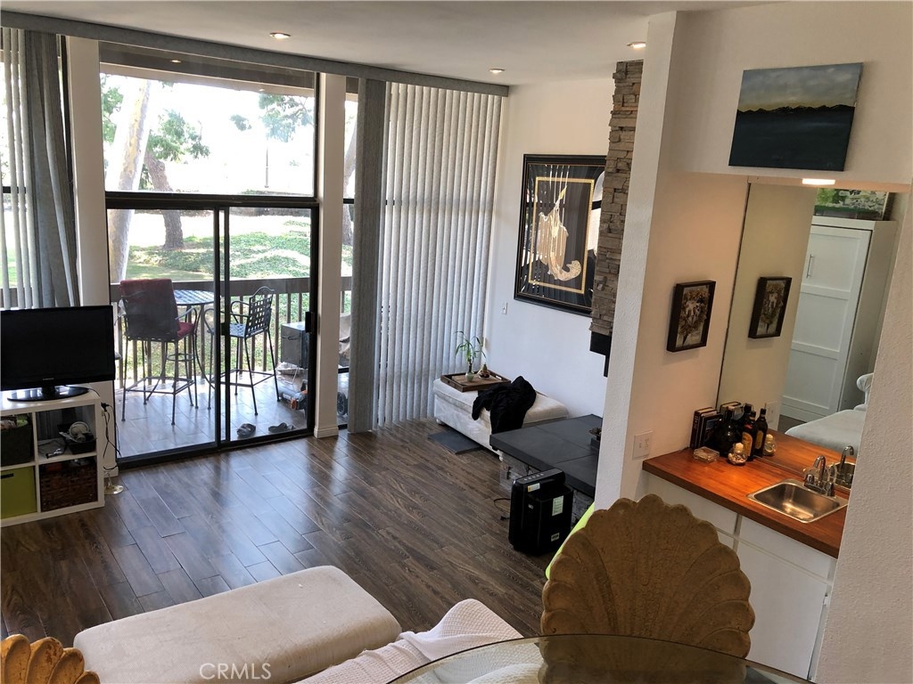 This studio unit has been updated with a newer murphy bed, soft-closing kitchen cabinets, a stainless steel built in microwave, a brand new ultra quiet Maytag dishwasher installed 3/28/21. Madeira Oak wood-look ceramic tile flooring throughout, including the outside deck. The bathroom has been remodeled with custom fit, soft-closing vanity drawers and cabinet door. From the outside deck, there is a peek-a-boo view of the canal. The direct view from the balcony features a large community green belt and a succulent garden. Marina Pacifica is a water oriented community offering 6 pools, 6 spas, 3 lagoons, a gym, two saunas, and a clubhouse with reception rooms. The gated bridge offers easy access to shopping at the Marina Pacifica shopping center.