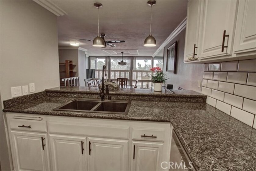Welcome to your beautiful new home in the resort-like Marina Pacifica waterfront gated community. This stunning single story condo consisting of 3 bedrooms and 2 baths and 1,777 square feet is one of the largest floor plans in this 570 home community.This home was carefully remodeled a few years ago.The bright living room with a mirrored wall features a gas fireplace (gas included in the HOA), high ceilings, plantation shutters and leads to the 35 foot balcony, which also can be accessed from the master bedroom. The kitchen features beautiful granite countertops which are contrasted by a subway tile backsplash and newer appliances including a Kitchen Aid downdraft stove,dishwasher, stove and refrigerator. You will never find more beautiful large bathrooms than the ones that this home has.Both baths have dual vanity cabinets & gorgeous granite countertops. One bath features ,mosaic glass tile w/contrasting tile design and a frameless glass sliding shower door. The other bath has a tub with stacked bond tile. The master bedroom has plantation shutters leading to the balcony. All three bedrooms are very large and have ceiling fans & hardwood floors. Adjacent to the master bedroom is a large walk in closet with organizer. Side by side washer & dryer are in a separate closet. There is great storage throughout the condo. Amenities include a fitness center, 6 pools and spas, private bridge to the Marina Pacifica Mall, clubhouse and more. Parking spaces are 1591 and 1592 in level P.