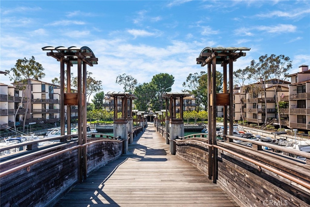 Beautifully updated, 2 bedroom,2 bathroom "Loft Model" unit is located on the top floor overlooking fantastic water view of boat slips plus channel view from downstairs bedroom. Featuring cathedral ceilings with 20 ft.high windows giving abundant natural light. Gorgeous hardwood flooring, fireplace in living room, wet bar with wine refrigerator, quartz countertops, stainless steel appliances and so much more!! Your chance to enjoy water front living on approximately !8 acres including 6 pools, 6 jacuzzi's, koi ponds, fountains, clubhouse and fitness center. 24 hour guard gated entrance. Perfect location to walk or bike to nearby Seal Beach, Naples Island or Belmont Shore. Walking bridge to shops, restaurants, theater and Ralphs. Beautiful new 2nd and PCH shopping center plus Gelson's at your doorstep.