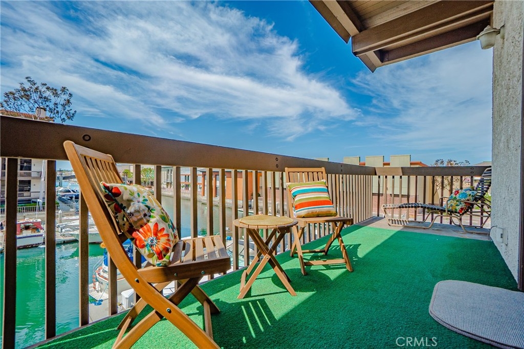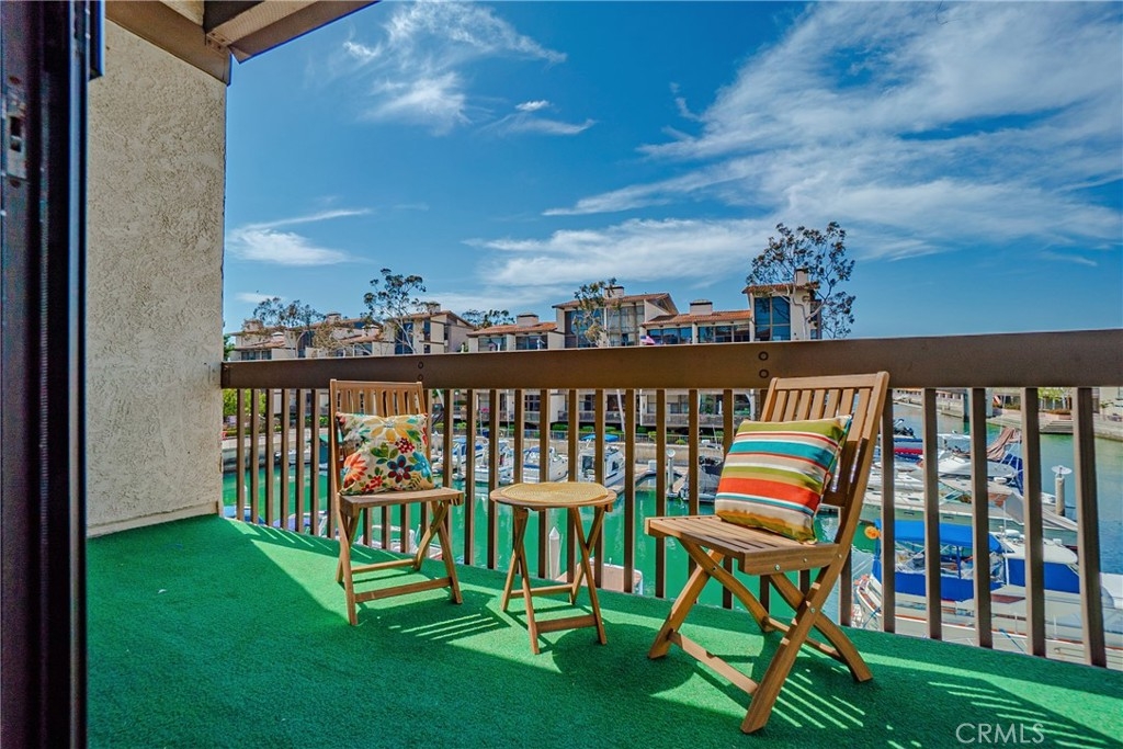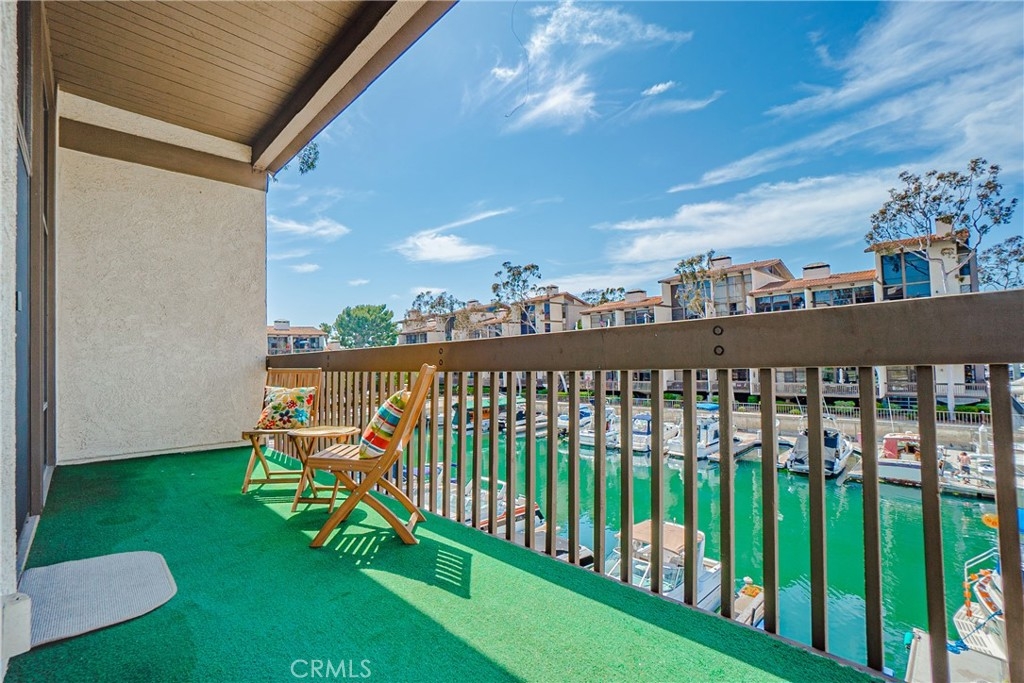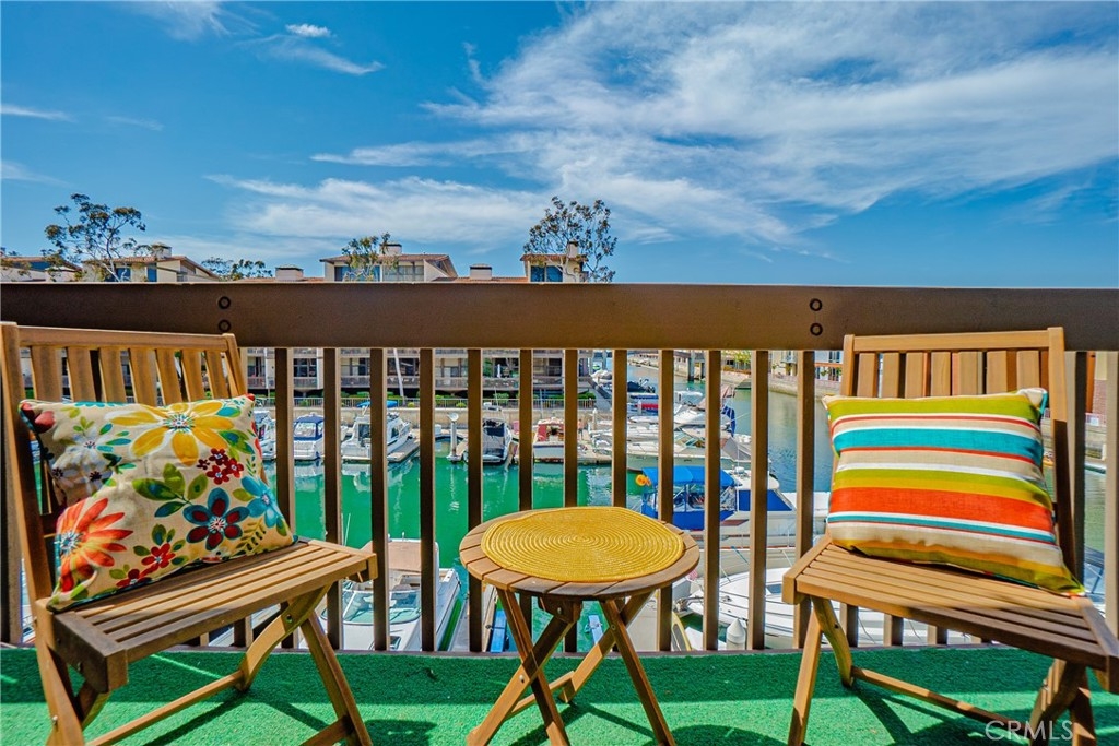 Enjoy spectacular water views from this highly desirable top floor corner unit with floor to ceiling windows. With two large wrap around balconies for relaxing or entertaining, this beautiful 2 level condominium is perfectly located in Key 1 and has amazing views all the way down to Spinnaker Cove. Featuring 3 bedrooms, a den area and 3 baths, this is the rarest of opportunities. On the top level find wood beamed cathedral ceilings, kitchen, living room with fireplace, a bedroom, a bathroom and large wrap around balcony. The lower level features 2 bedrooms, including the primary, the bonus den and laundry area for side by side washer and dryer. The large primary bedroom offers another fireplace, a walk in closet, more floor to ceiling windows overlooking the water and yet another wrap around balcony to take in the amazing views and cool breezes. Two deeded parking spaces w/storage. This home also offers tons of closet space and linen storage. With multiple entrances this unit is the ultimate in privacy! This is waterfront living at it's best, in addition to premium views, the resort-style amenities include 6 pools and spas, a fitness center, a clubhouse, 18 acres of lush landscaping, and a 24-hour guard to the gated community enhance. Residents also enjoy being in very close proximity to the Marina Pacifica Mall, Naples Island, Gelson's, the farmers market and the recently opened 2nd & PCH Shopping Center. This truly is So Cal living at it's best!