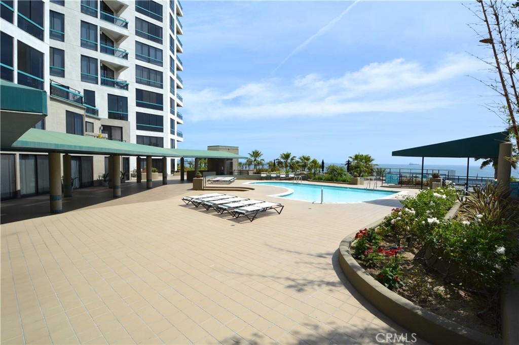 Spectacular oceanfront living at its finest! The Ocean Club is one of the most exceptional condominium communities in Long Beach. Gaze out at the Pacific Ocean all day long listening to the sound of the waves from every room, watch the sunrise in the morning and the sunset in the evening. Views of the Queen Mary, the Harbor, Marina, and Downtown at night with all the twinkling lights can't be beat! You never have to leave the building. Pool, jacuzzi, gym, BBQ, firepit, billiards room, 24-hour front desk personnel and more are all included. A full-service building offering safety, convenience and value. There is even a guest room available for rent. The unit itself has tile in the entryway and kitchen, newly installed carpet in the living room and bedroom. Brand new microwave, stackable washer/dryer, refrigerator, and two-year-old dishwasher in the kitchen. The dining area has beautiful built-in cabinets. It is an open floor plan so the is an amazing view from everywhere in the unit. Never worry about parking as you have two spaces in the best spot in the gated security garage Come see this unbelievable condo and make it your own. You've always wanted to live on the beach so now is a perfect opportunity! Open floorplan very airy and bright with high ceilings. Don't wait, come see it today, won't last long!