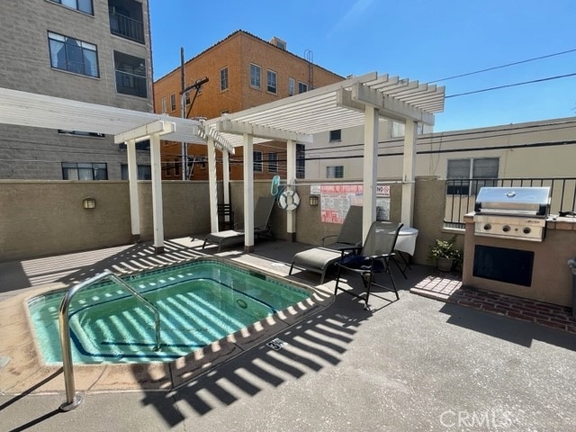 Trendy Downtown Long Beach Condo. Super Clean, Bright and Airy. Enjoy Seabreeze through the private balcony. Freshly painted interior. Laminated wood plank flooring throughout. Nice flow of floorplan. Full bathroom with a separate vanity area with double sinks in between the bedrooms. Cozy kitchen. Granite counter top. Breakfast counter. Fireplace. Forced air heating. Jacuzzi and BBQ area. Low HOA dues. Close to Beach, Pine Square, Blue Line, Shoreline Village, Queen Mary and more. Priced low for a quick sale!